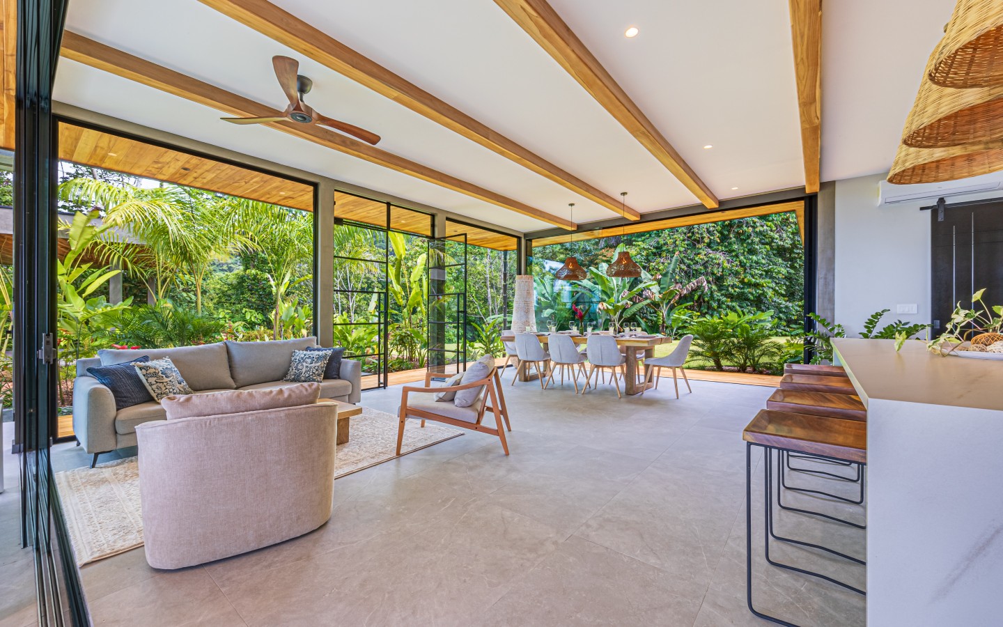 This brand-new villa was thoughtfully designed to maximize every space while maintaining a seamless connection between indoor living and the surrounding tropical nature.