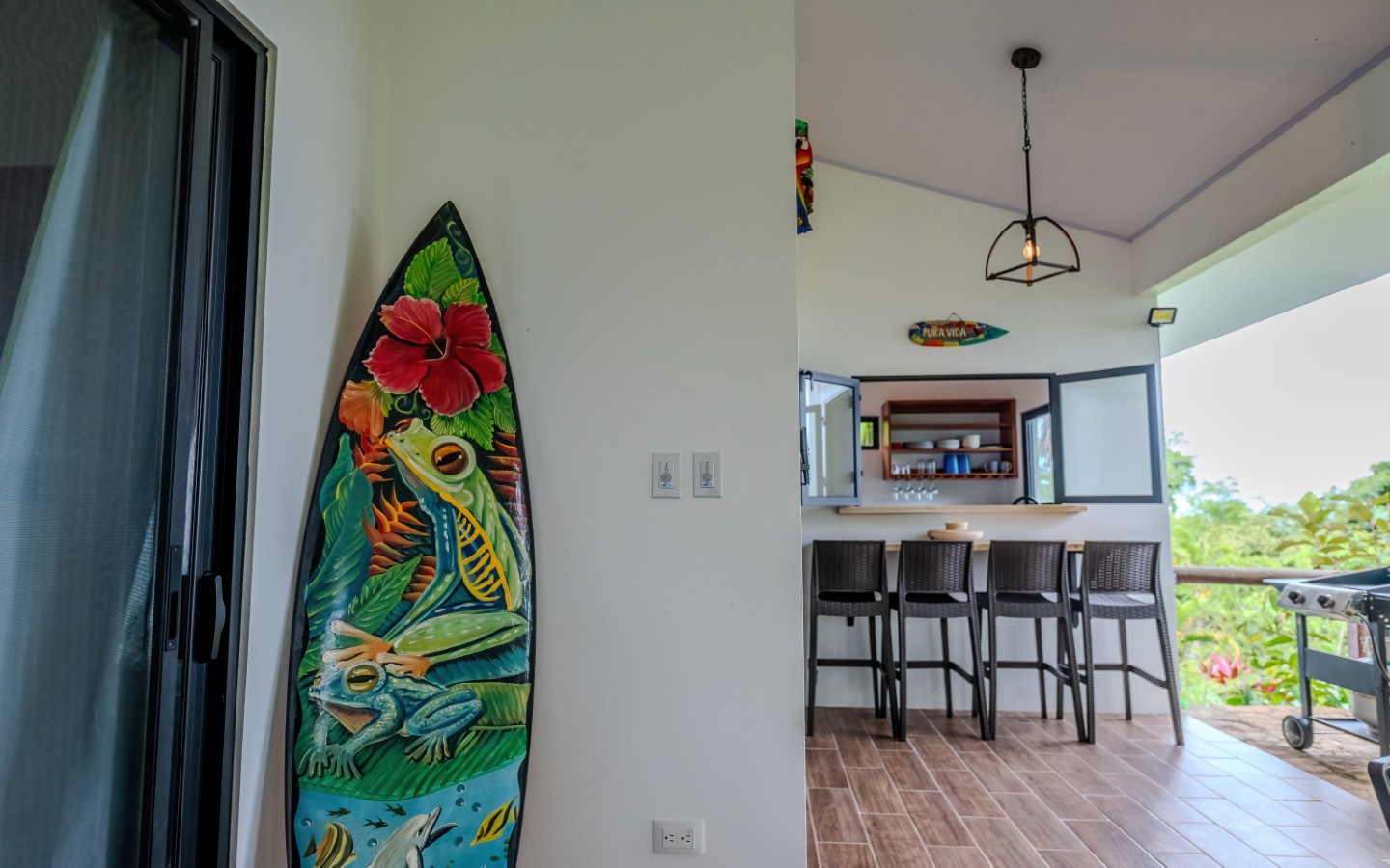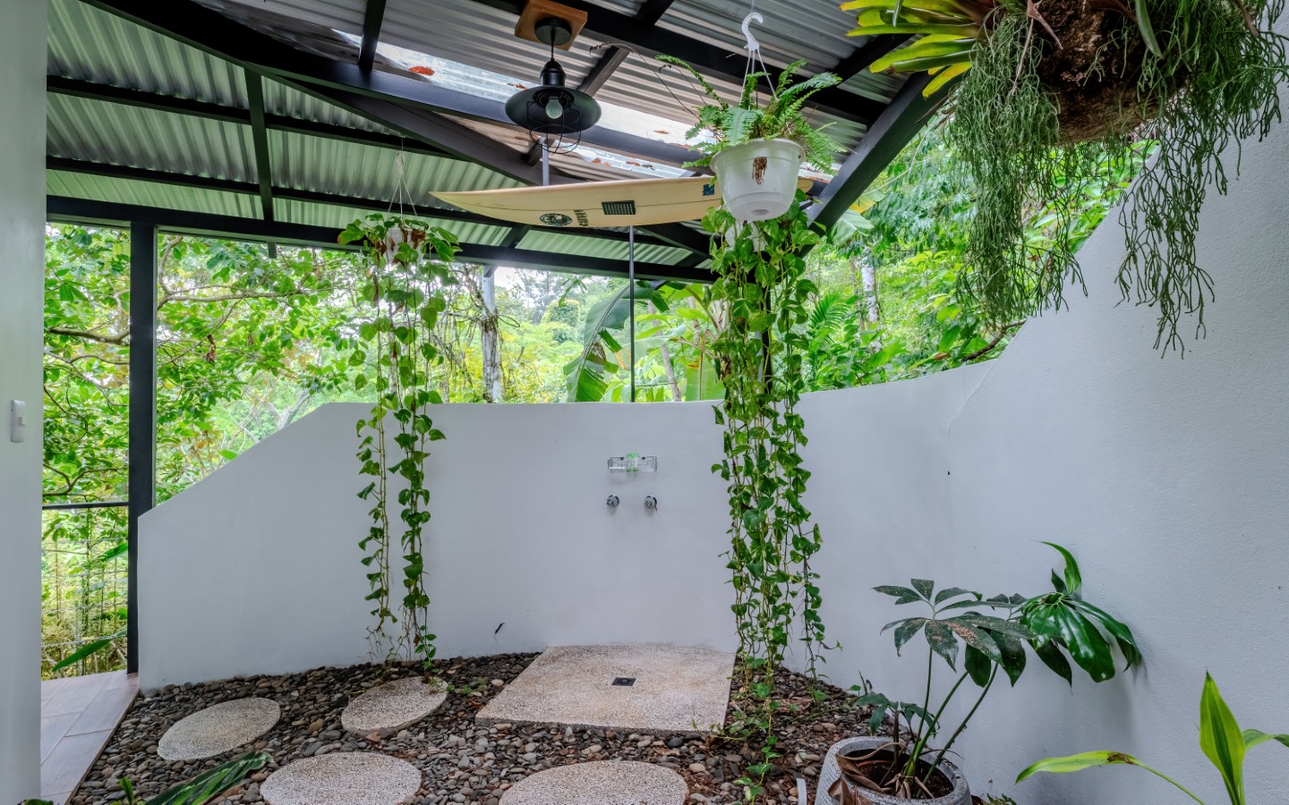 Surrounded by lush jungle and dramatic mountain backdrops, the setting is serene and private. Only 10 minutes from the surf town of Dominical and 15 minutes from Uvita, two of Costa Rica’s most popular coastal destinations offering restaurants, shops, and essential services.