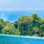 Downstairs, the large & sunny infinity salt-water pool steals the show – located just in front of the house, the pool stretches along the entire length of the patio. And the pool views are nothing short of spectacular – you are looking down at hills, rainforests and the Pacific Ocean while the coastal mountains take over to complete the flank of the vistas. But the integrated outdoor BBQ station, with a sink and plenty of counter & storage space, is not to be overlooked – protected by the overhanging roof, I think it will often become a star of the show in its own right!