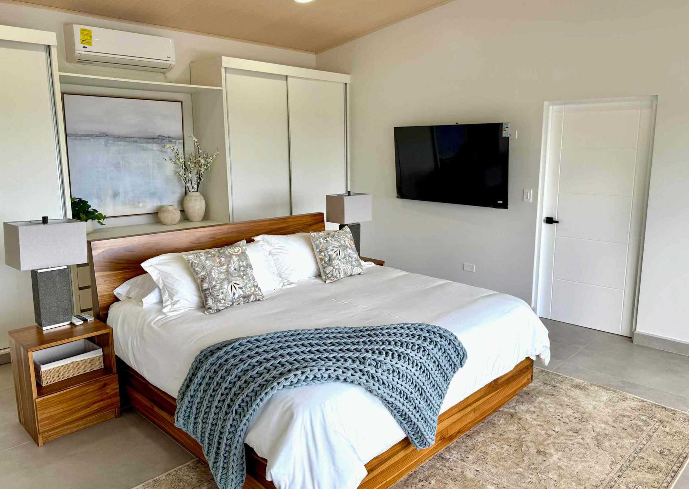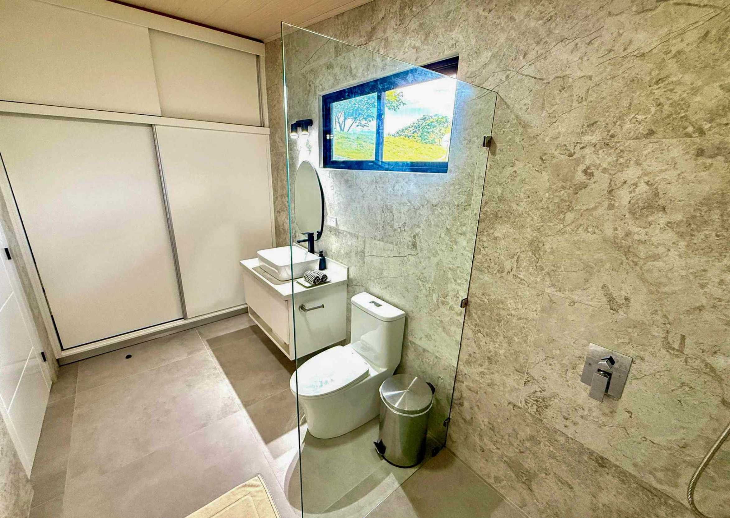 Each of the four spacious en-suite bedrooms is a private sanctuary, featuring king-size beds, large ceiling fans, air conditioning, electronic blackout shades, and big-screen TVs. Every bedroom offers unobstructed coastal views and three of them also offer lush forest and majestic mountains beyond so you get the best of both worlds. A unique feature of this home is the second-story en-suite bedroom with a separate entrance and private balcony, offering an ideal retreat for guests or those desiring extra privacy.
