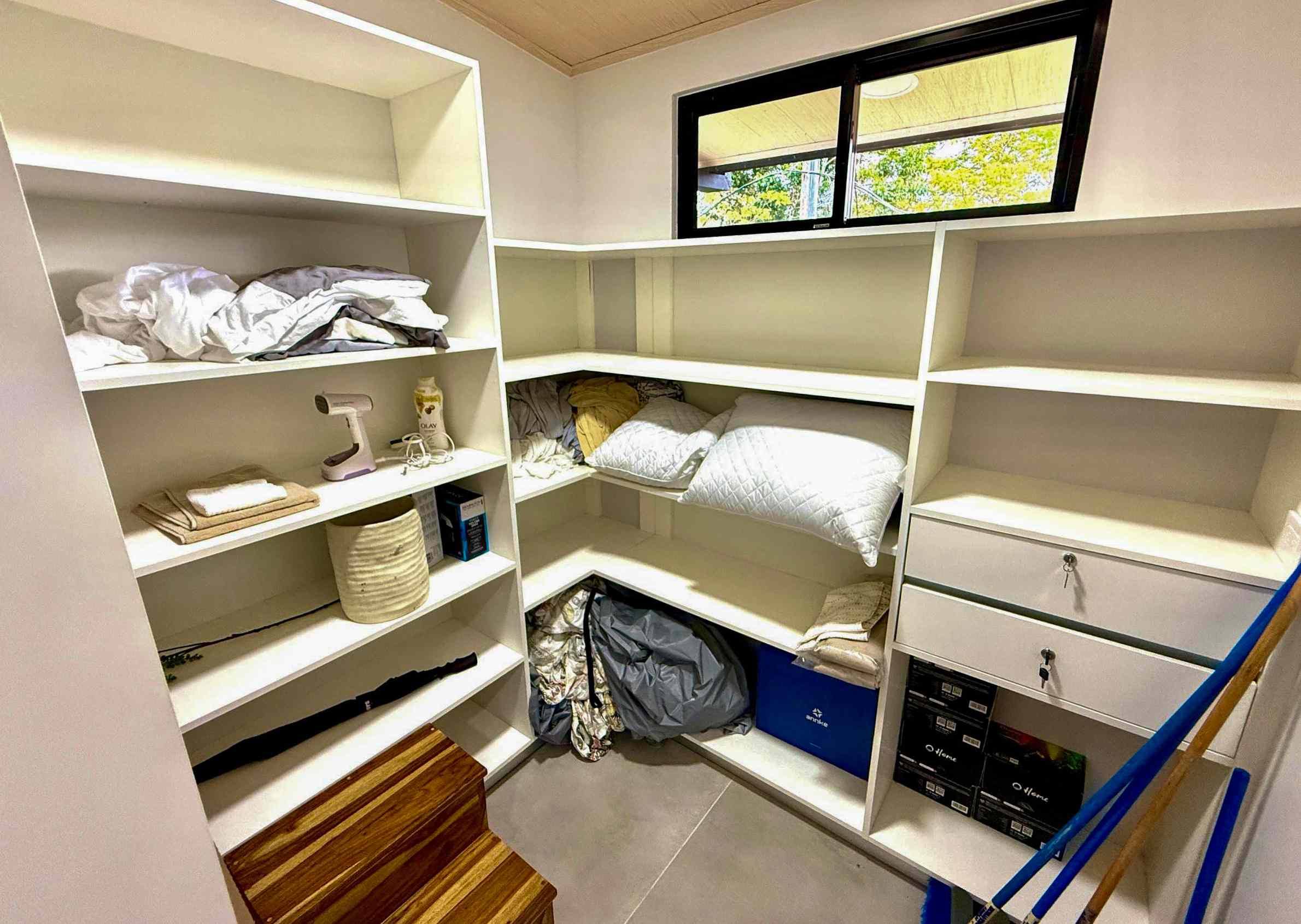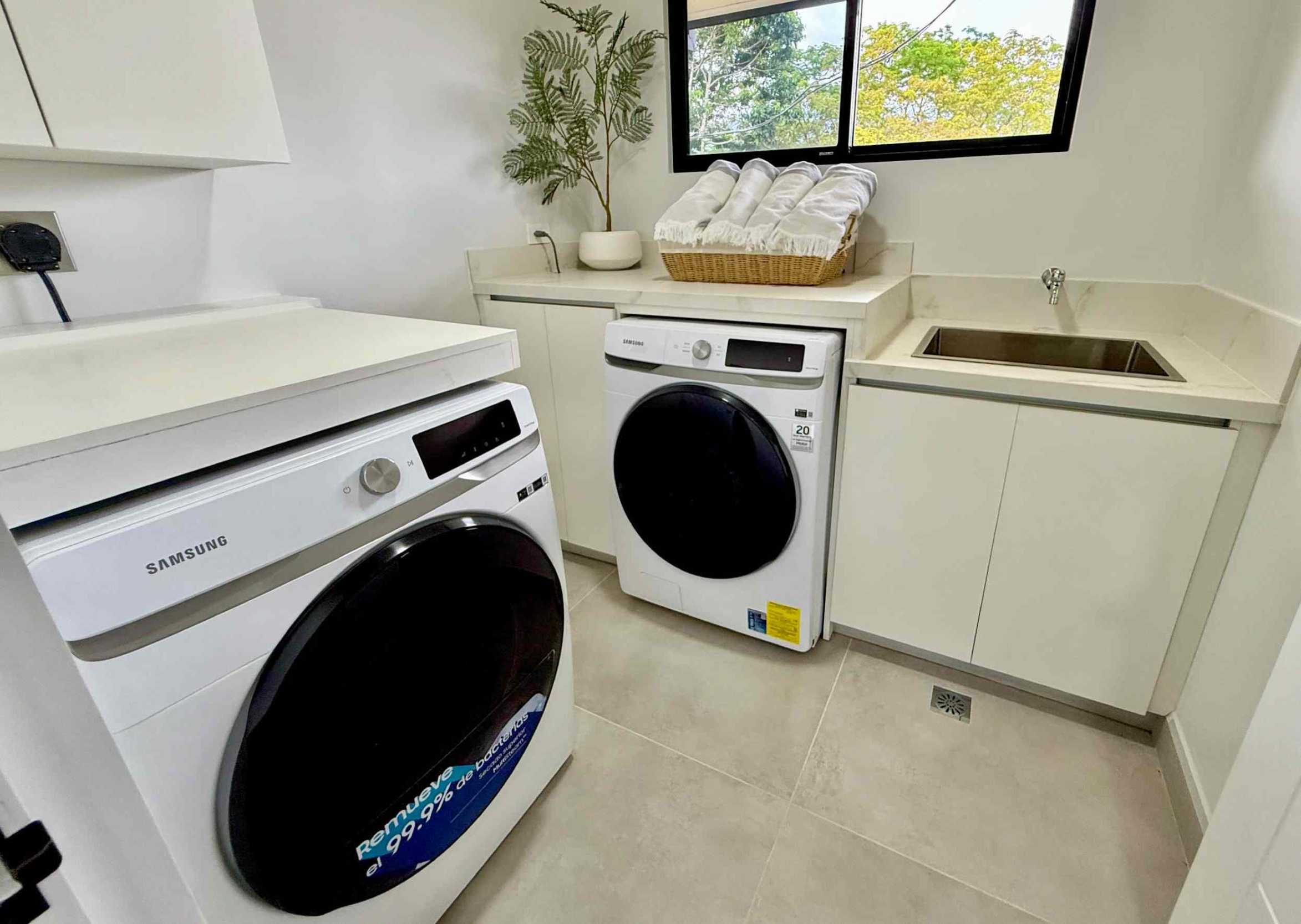 Back inside, practicality meets luxury with a spacious utility/laundry room featuring high-end machines, a utility sink, and ample storage. Additionally, since this home is ready for full-time living OR for vacation-rentals, there is ample storage available in the generous linen closet with tons of cabinetry to organize and care for your belongings.