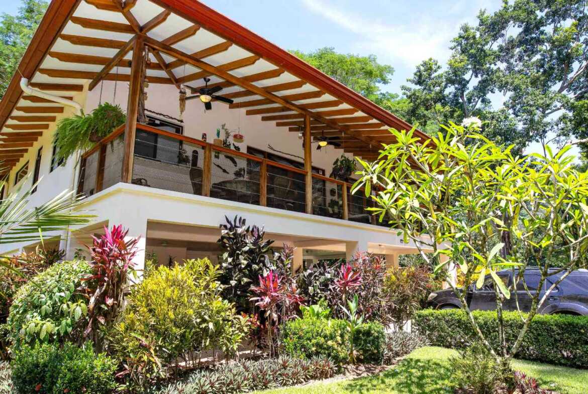 The home is close to the Coronado River and offers a continuous, unobtrusive sound of the river waters. The jungle begins on the other side of the road with monumental trees including several Guanacaste trees (national tree of Costa Rica). You can observe all kinds of tropical birds, butterflies, and animals straight from your home or from the hiking trails that start very close to the property – the monkeys, macaws, toucans, and blue morpho butterflies will be your new neighbors!