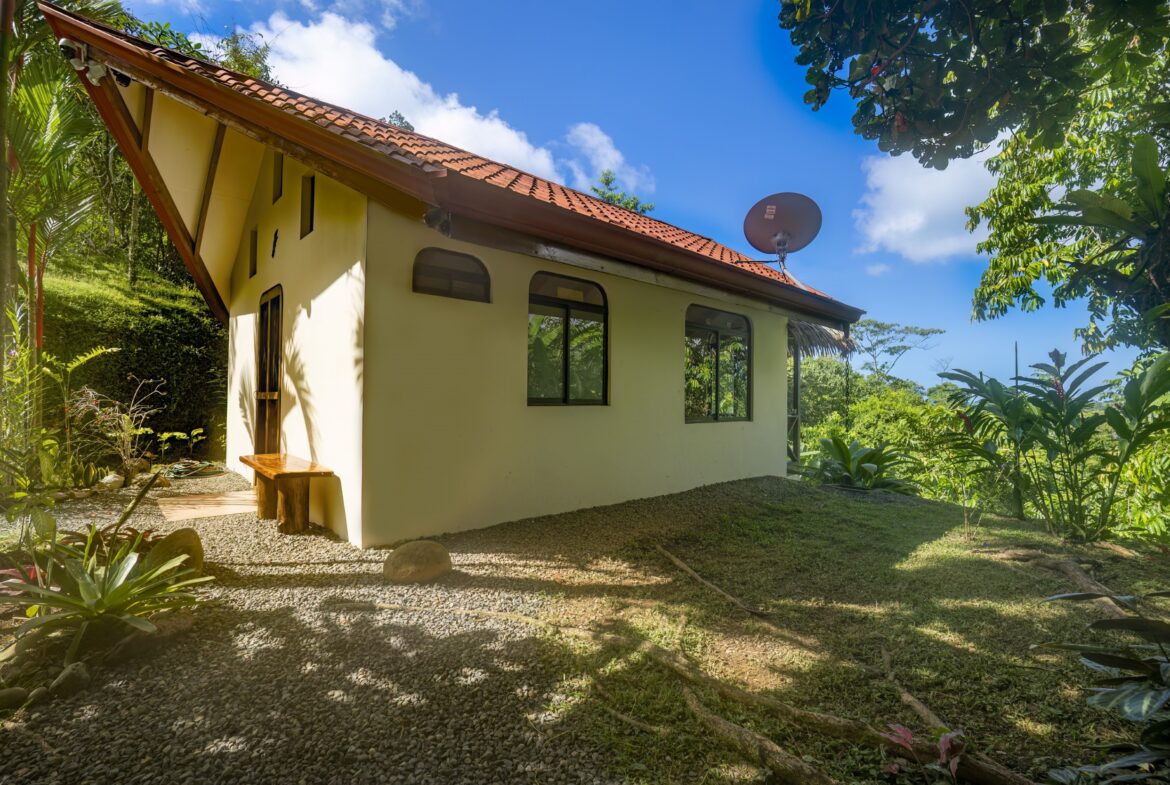 Tranquil 3.5 Acre of Jungle Land with Creeks & Abundant Wildlife, Perfect for Building House & 4+ Cabins with Existing Cozy Sunset Ocean-View Bungalow in Tres Rios Costa Rica