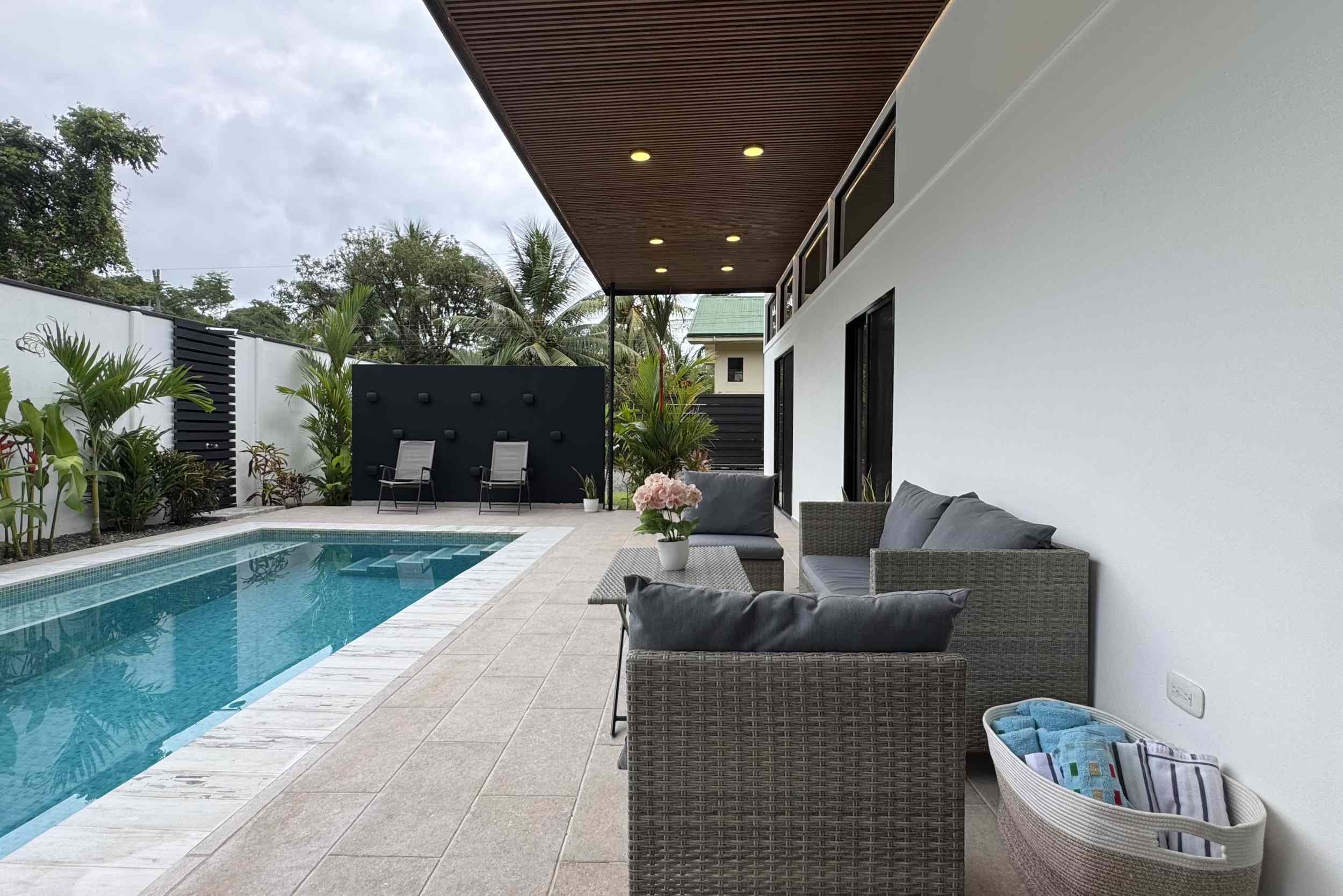 The perfect blend of modern design and tropical living at Villa Selva, located in the quiet and charming neighborhood of Chamán—just minutes from town of Bahía and Uvita. From this peaceful retreat, you can walk to the famous Whale Tail Beach in under 5 minutes, right from your doorstep.