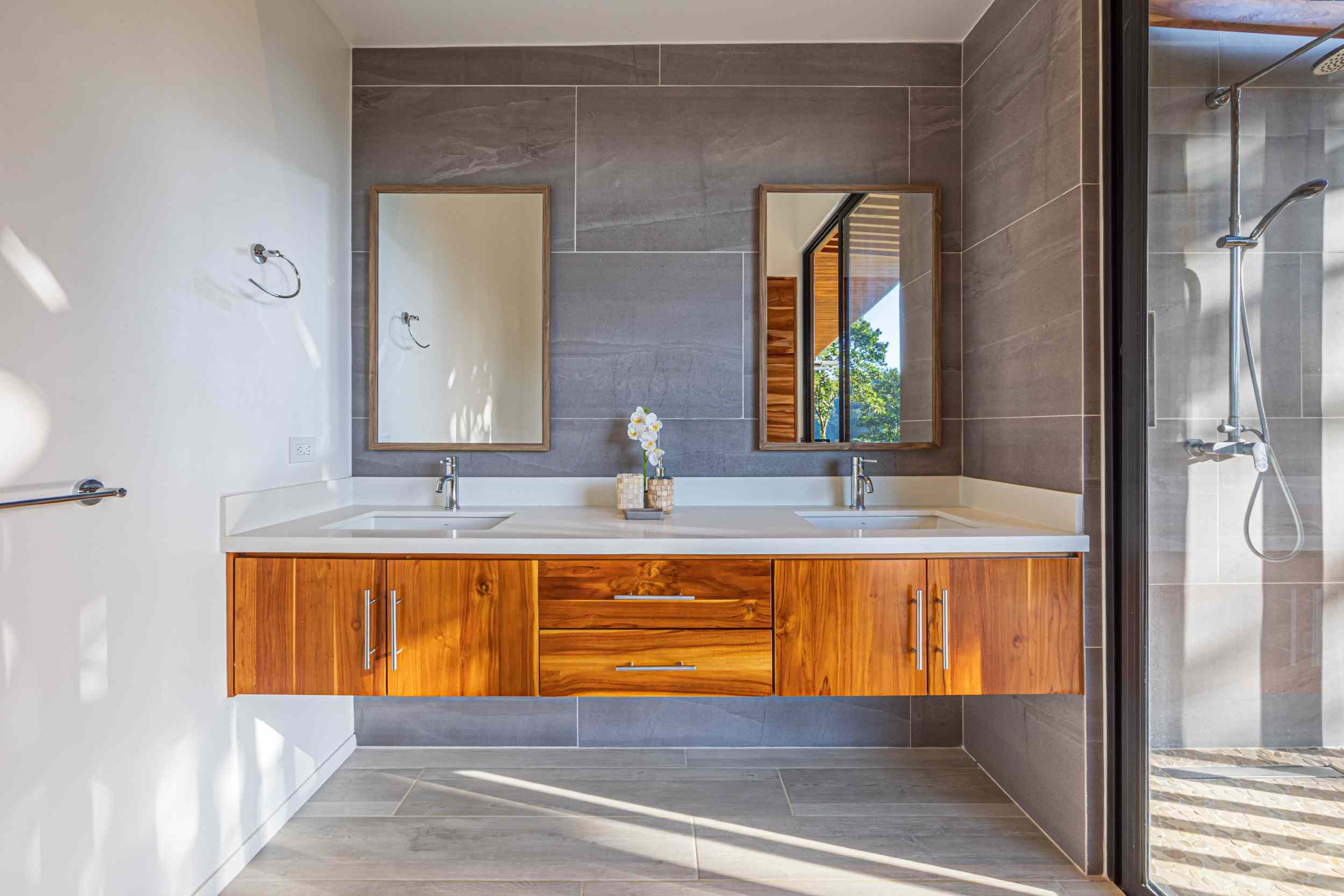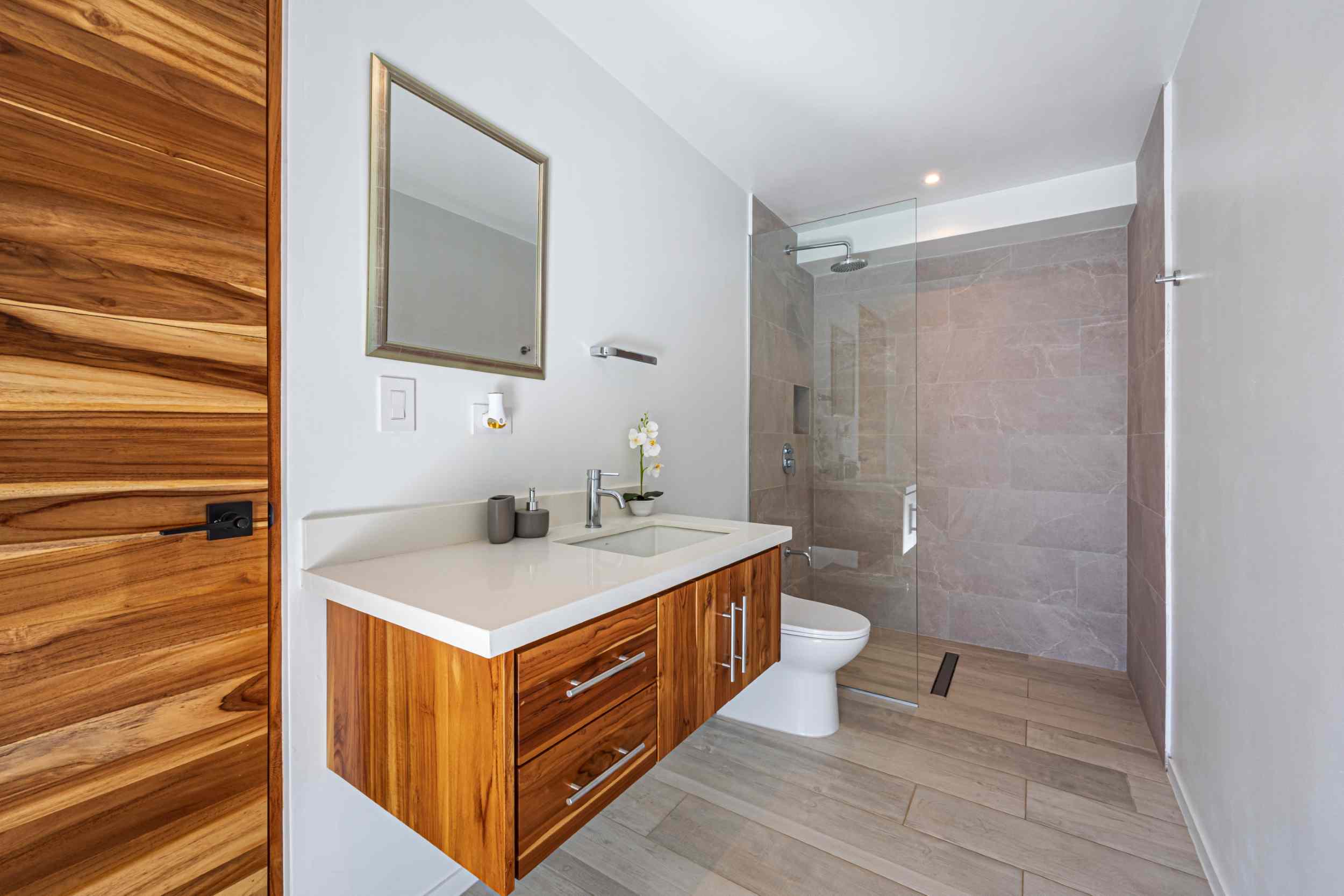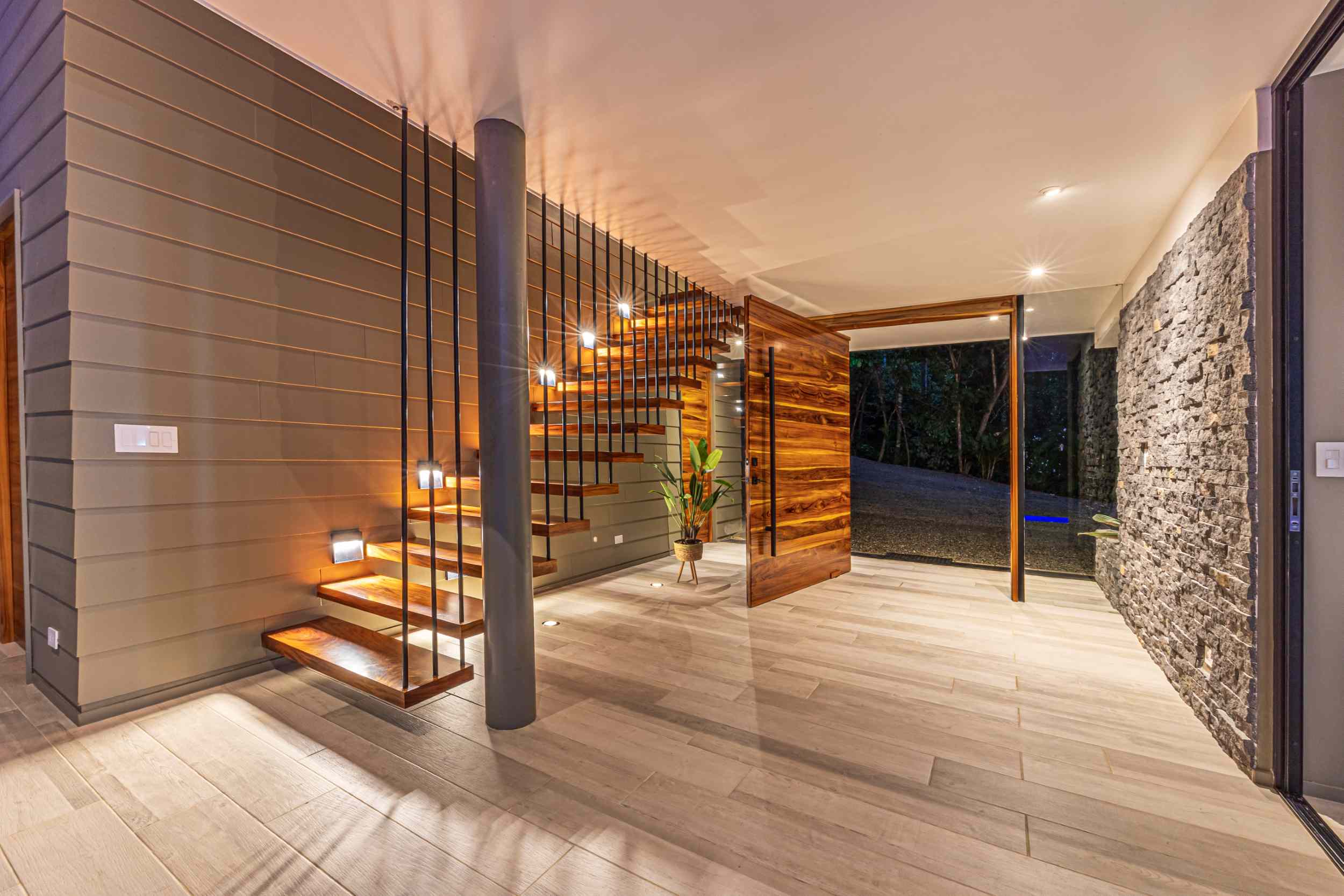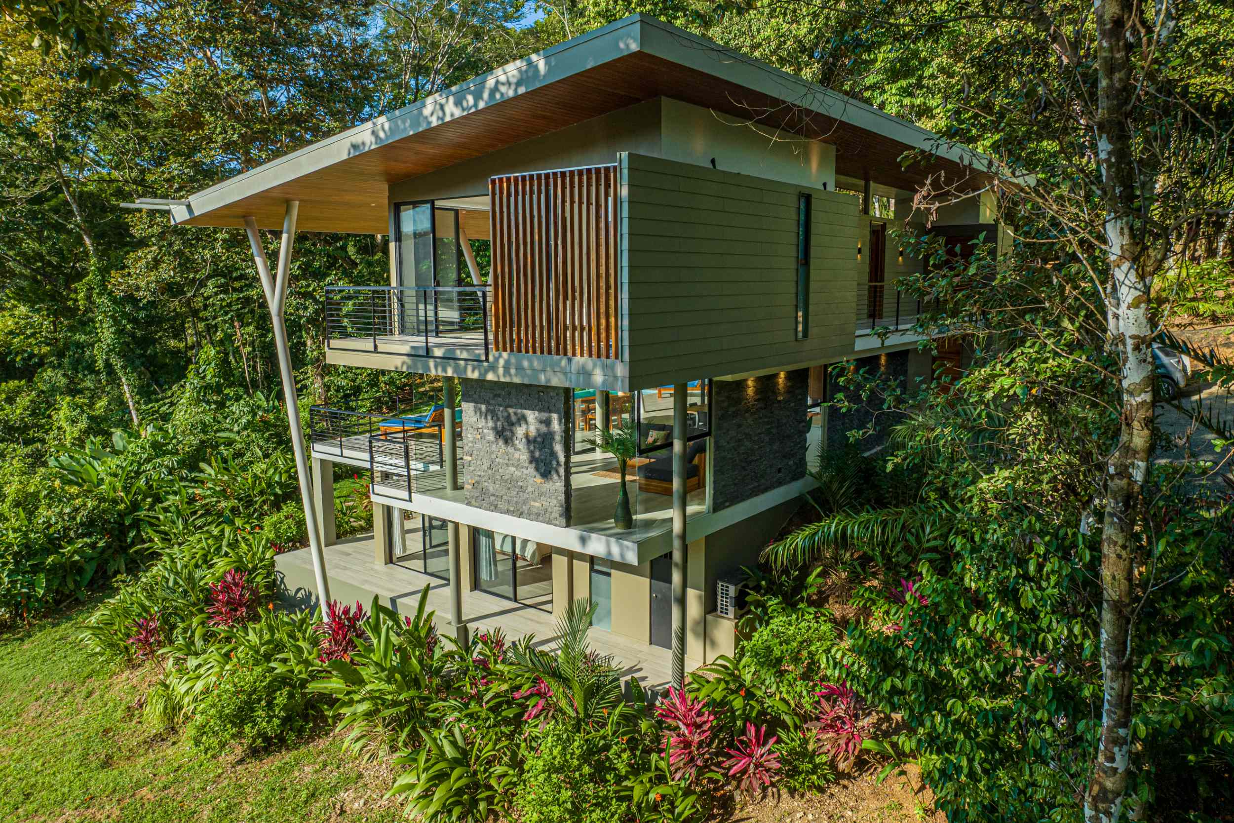 Unwind in the infinity pool or soothe your senses in the hot tub while listening to the gentle sounds of the jungle serenading you from below. The estate is fully private, gated, and nestled within a secure community, offering complete peace of mind.