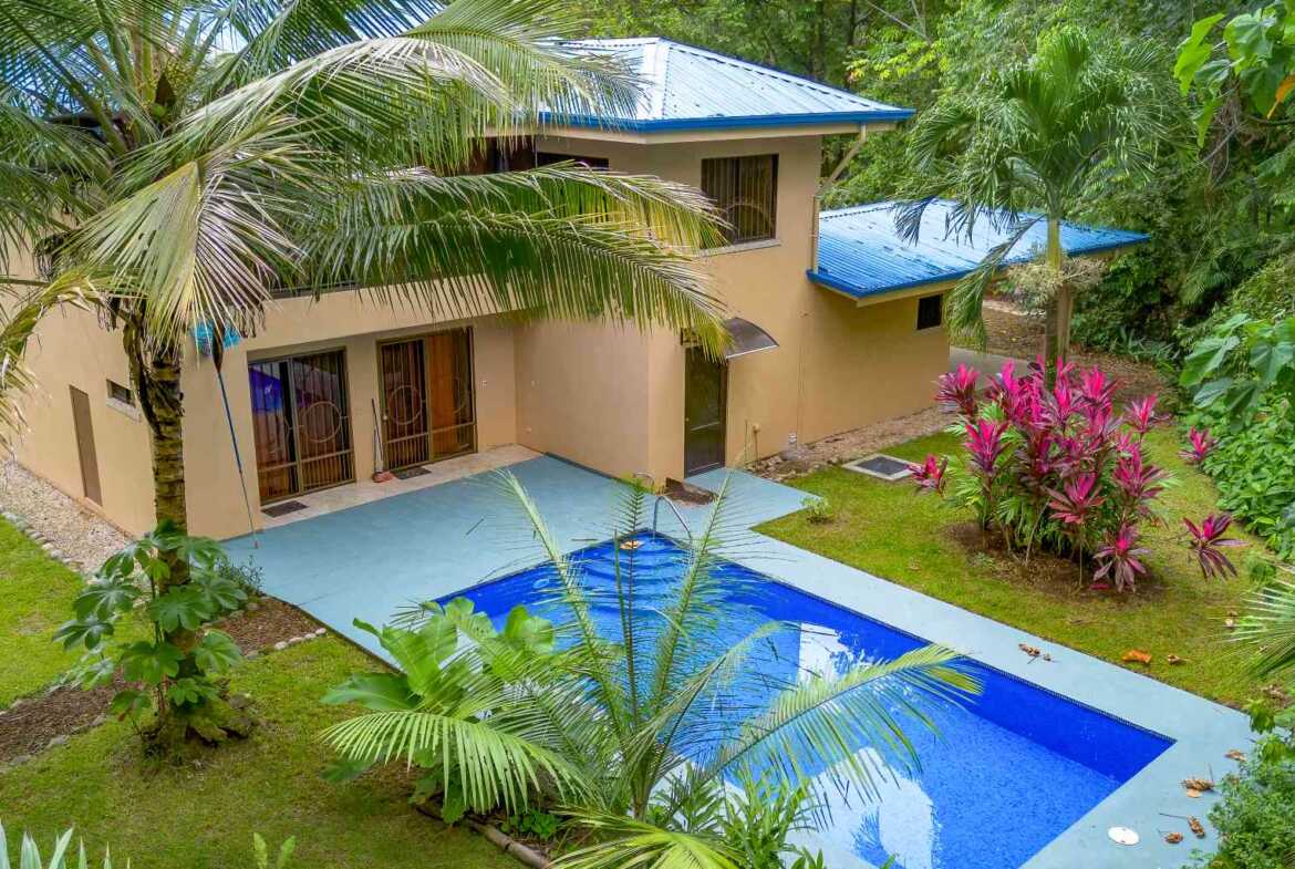 Tucked away in the jungle scape of the Cinco Ventanas neighborhood near Ojochal, this 3 bedroom, 2.5 bathroom home is perfect for those who want to enjoy the lushness of the rainforest without being too remote. This two story home holds a functional layout that is cozy and welcoming, with a usable yard space.