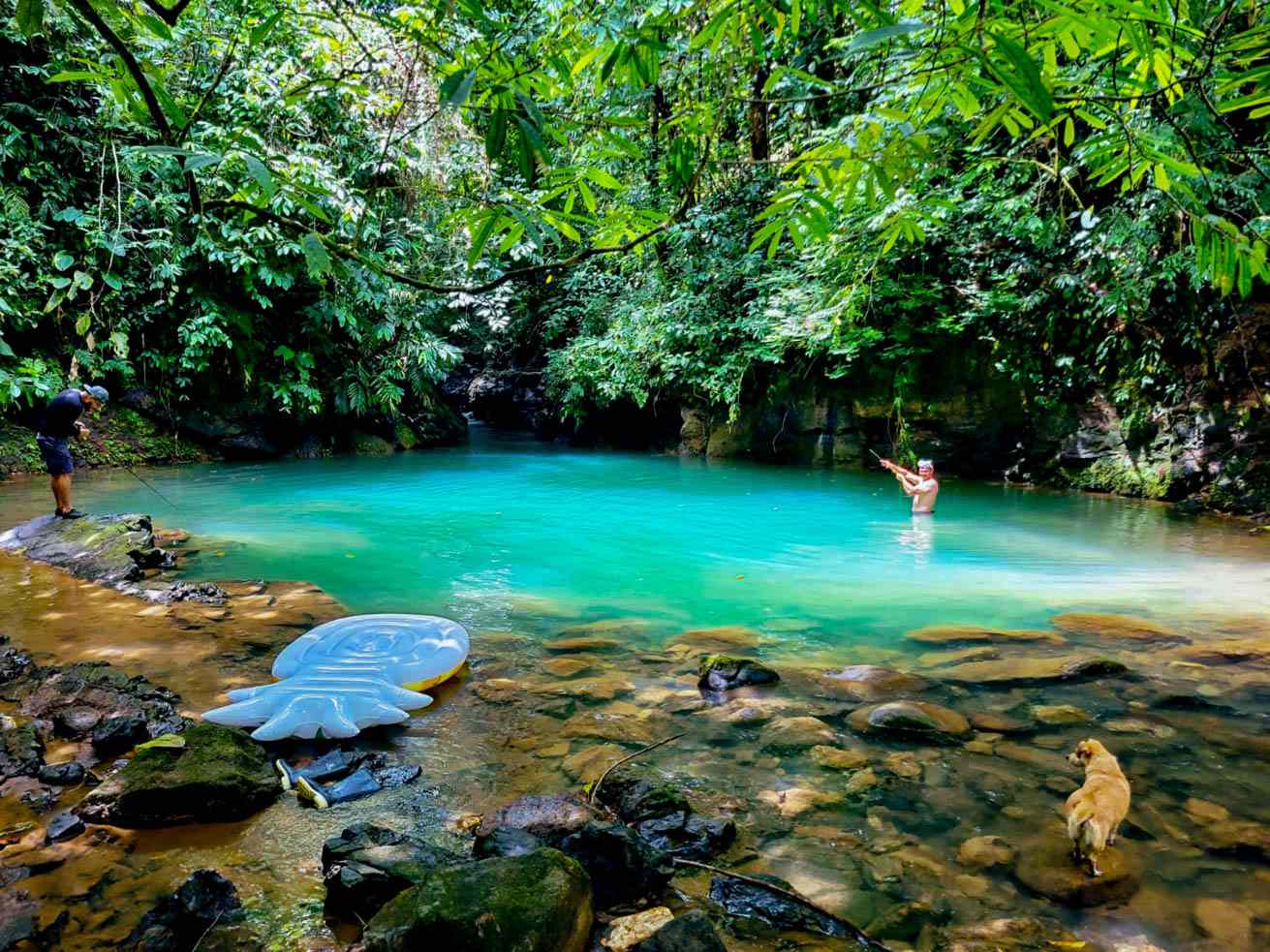Now for the hidden gem – a staircase, descending through the vibrant rainforest which starts right over the roof of the house, winds its way between the jungle trees and beautiful tropical flowers. A short walk down the slopes of a valley brings you to a charming year-round river which offers multiple swim holes. At times the waters of this crystal river appear to be a deep turquoise colour – and so the swim holes become magical places that make for truly unique Instagram photos! This is a beautiful spot for relaxation, a cool dip, practicing morning yoga, firing up a BBQ or meditating in the tranquillity of nature.