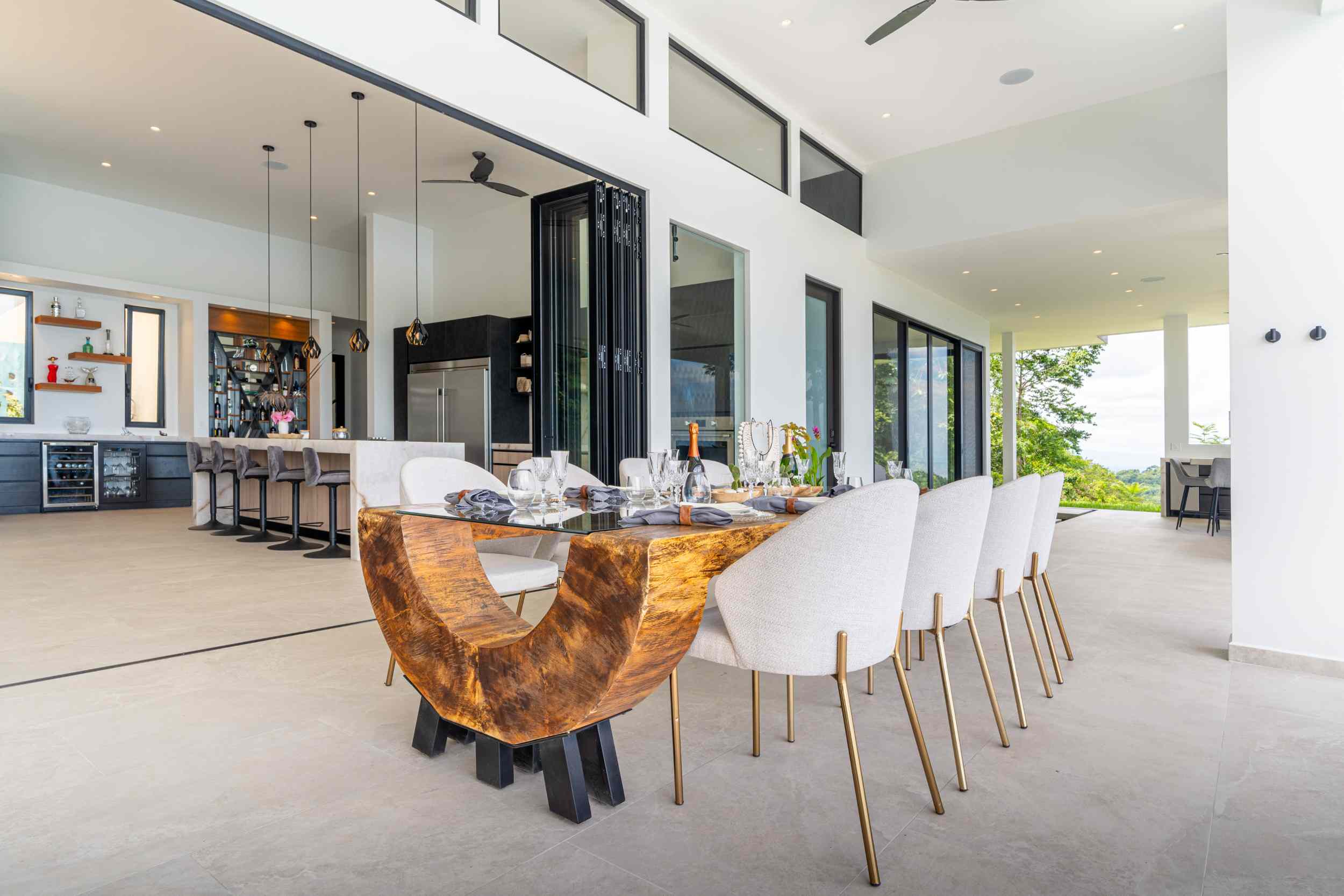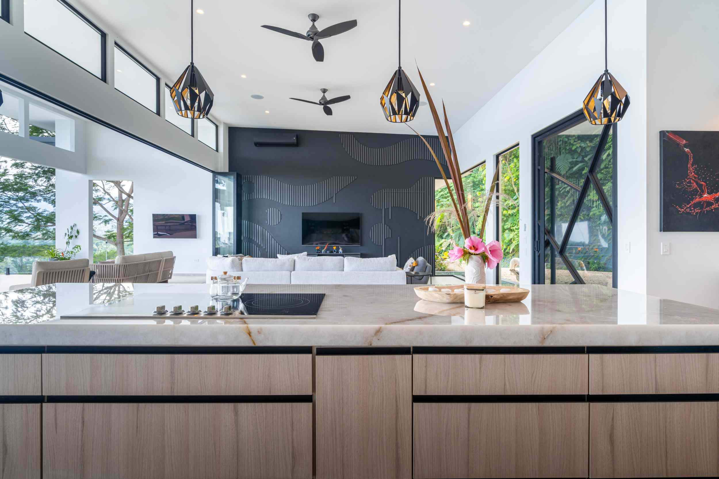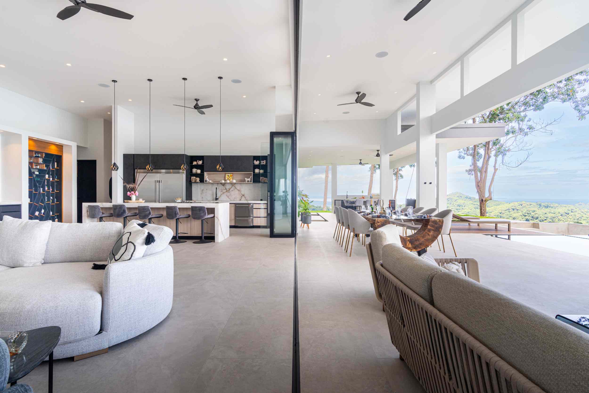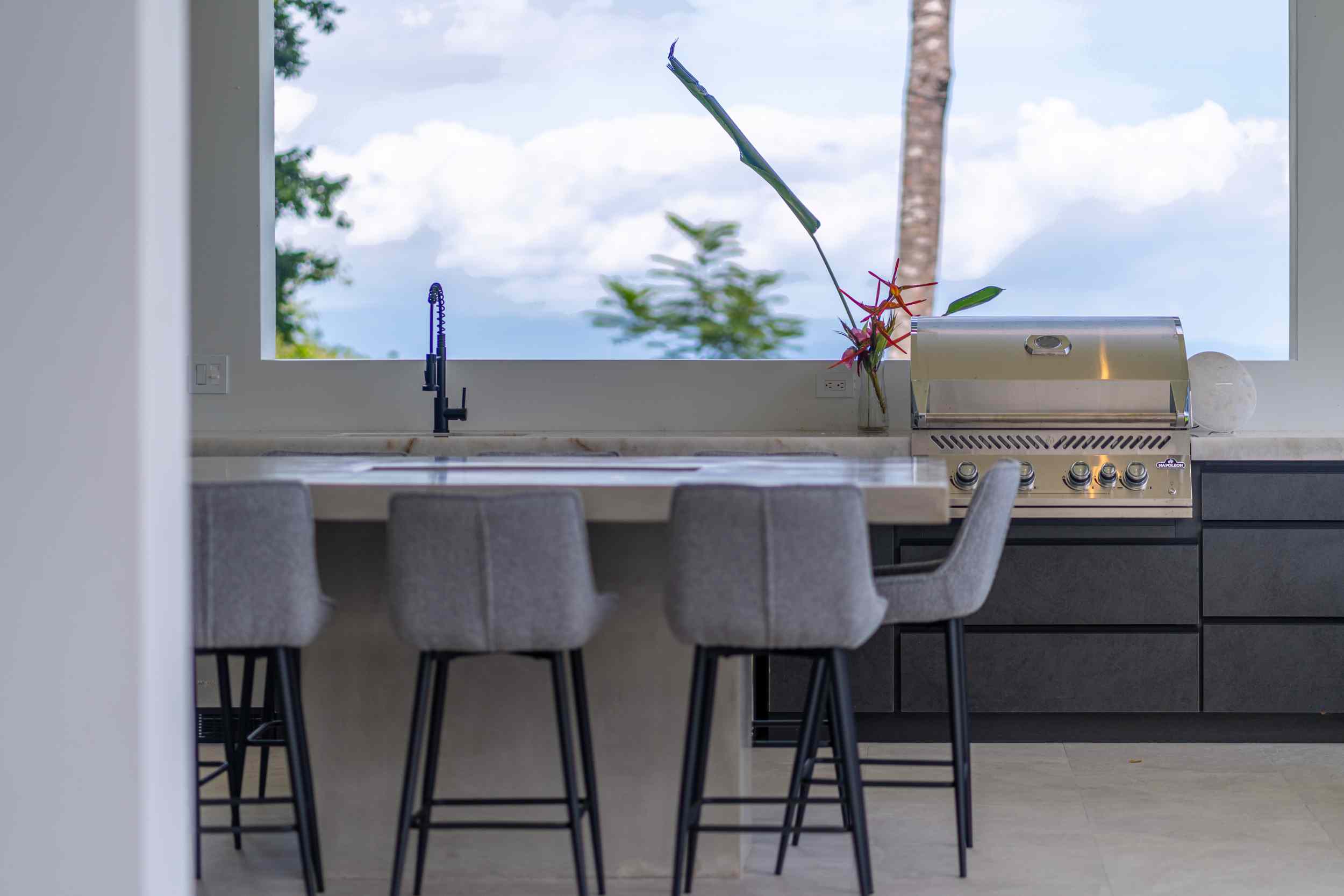 - The chef’s kitchen flows into expansive indoor-outdoor living spaces, ideal for alfresco dining or sunset cocktails.