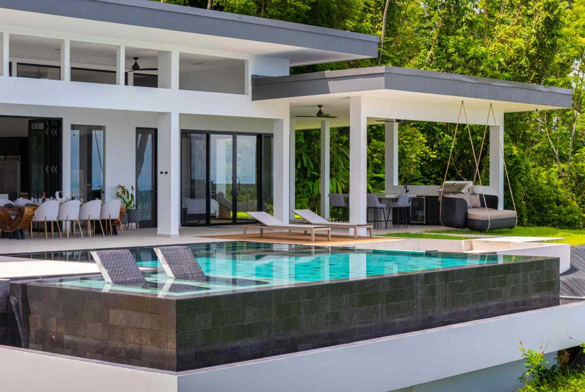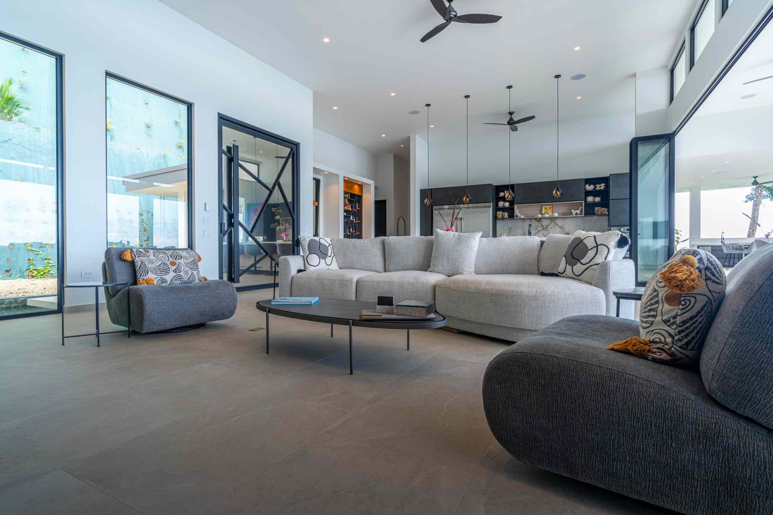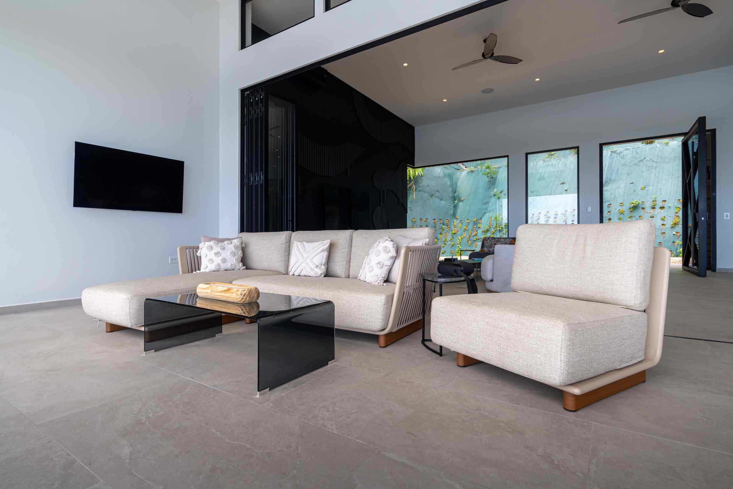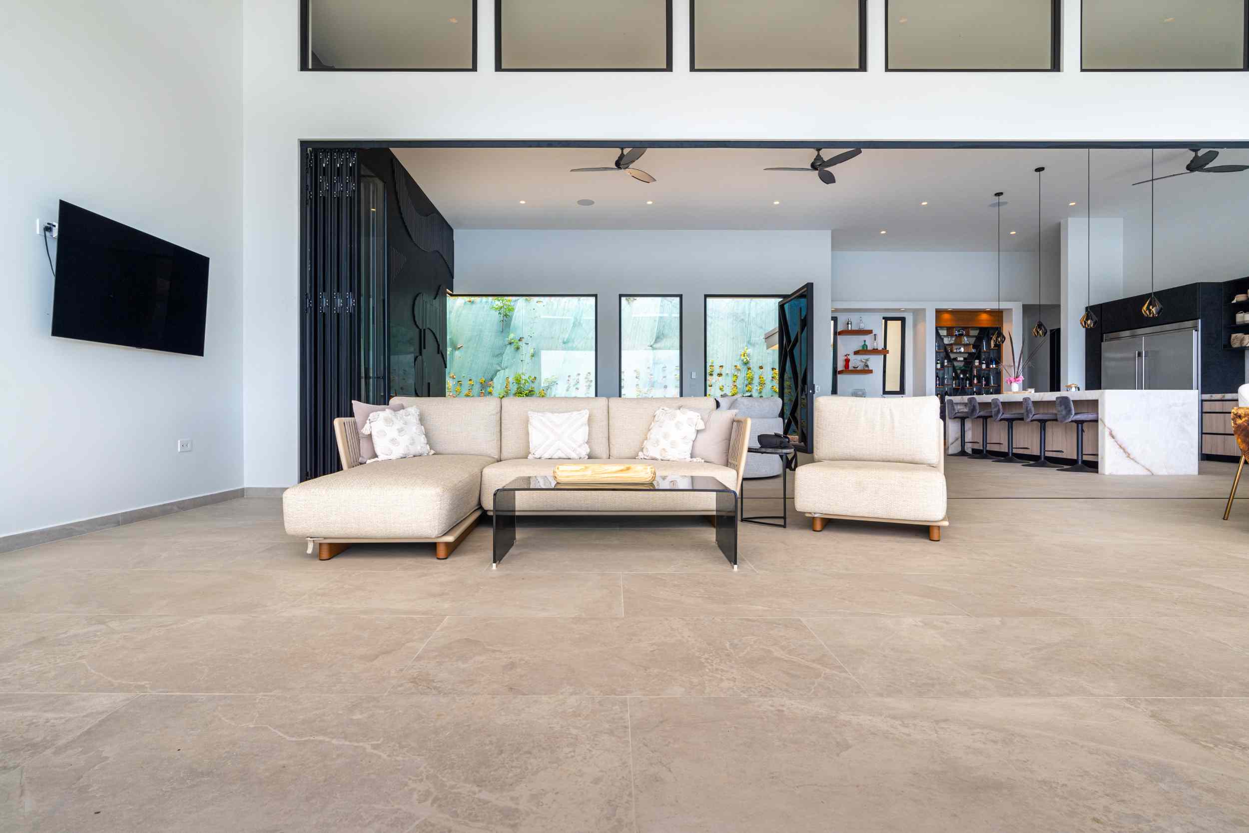 - The chef’s kitchen flows into expansive indoor-outdoor living spaces, ideal for alfresco dining or sunset cocktails.