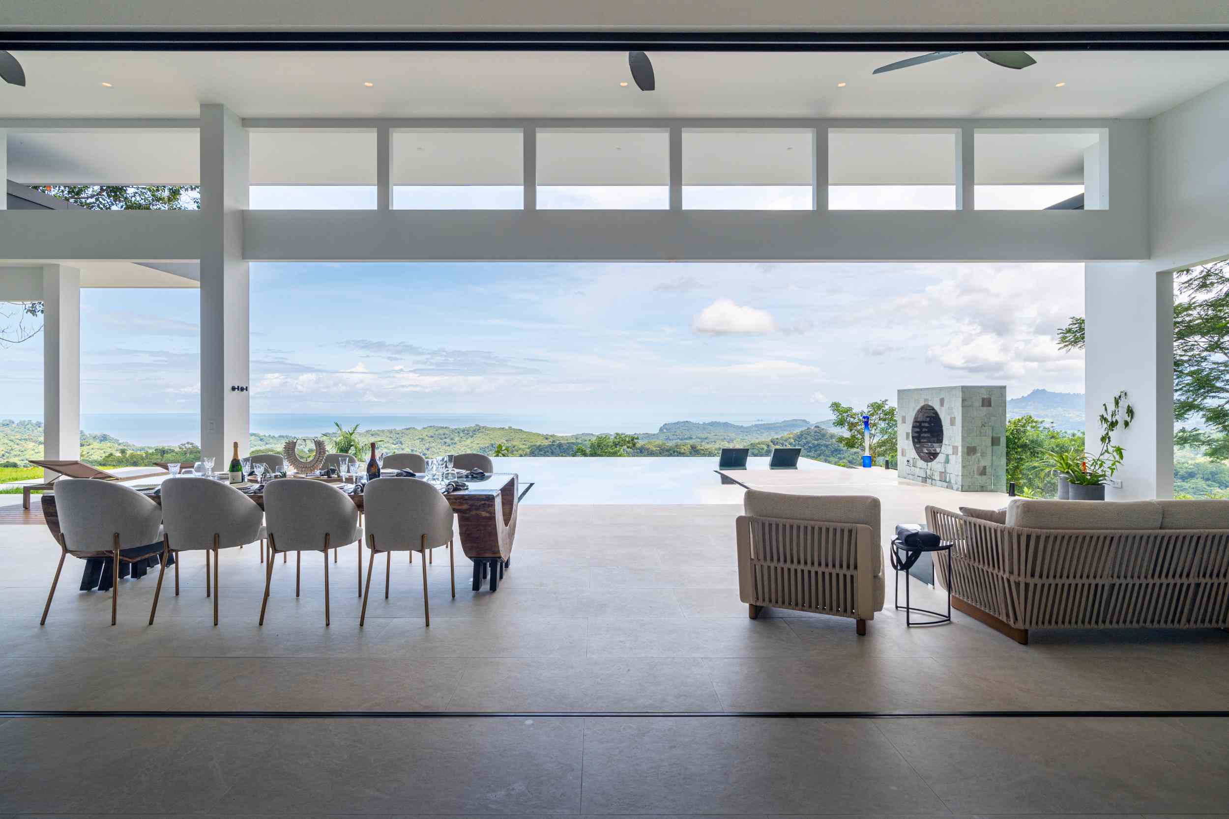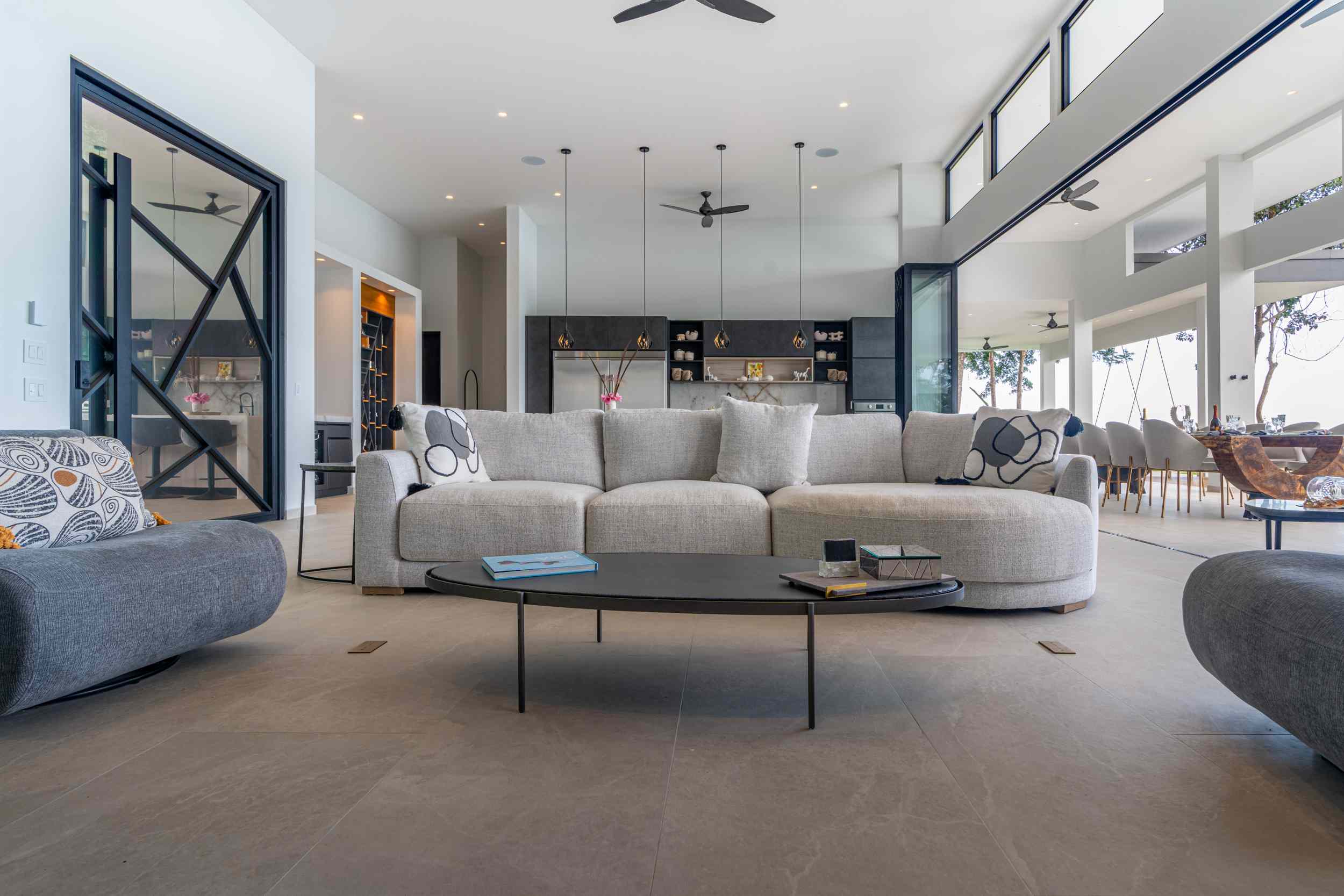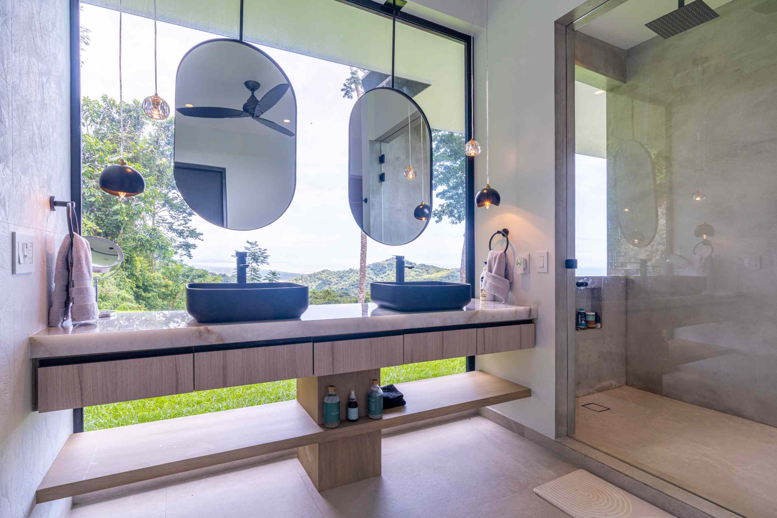 Commanding 280-degree panoramic ocean views, this beautiful home gazes across the deep blue Pacific, taking in three distinct whitewater coastlines, Caño Island, and the iconic Whale’s Tail formation at Marino Ballena National Park. Every evening, the sky bursts into color with year-round sunsets, while the twinkling lights of Ojochal shimmer below, painting a scene of magic and mystery.