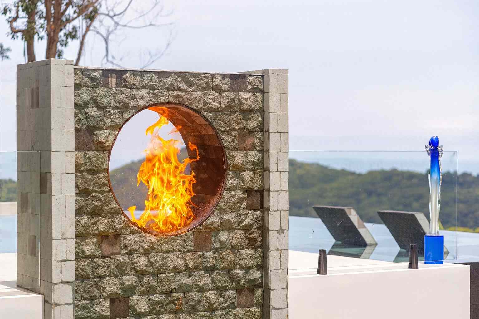 - Fire warms the heart with an elegant fireplace, and sets the night aglow in flickering brilliance.