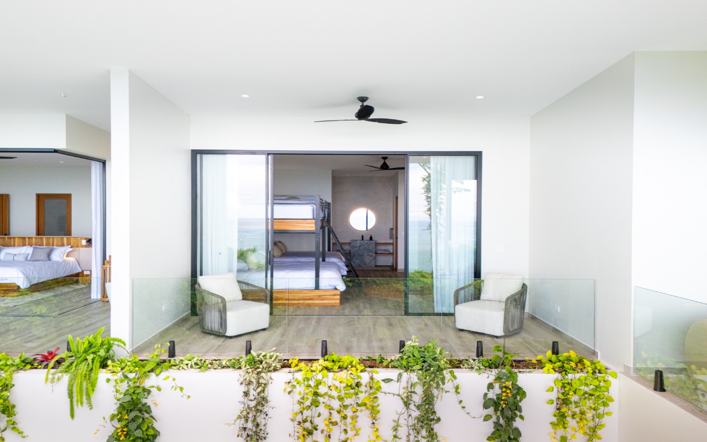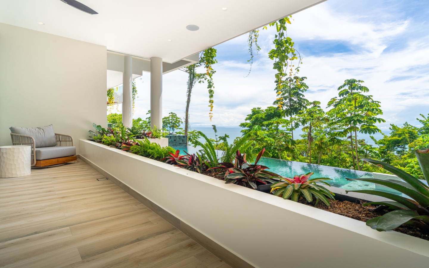 No expense was spared. Every piece of furniture was custom made in Costa Rica and Bali, with materials and fabrics chosen to endure the climate of the Southern Pacific. The villa is crowned with a standing seam insulated steel roof, built strong against rain and sun alike. Lush gardens, both inside and out, bring nature into every corner of the home, including a soaring second-level atrium.