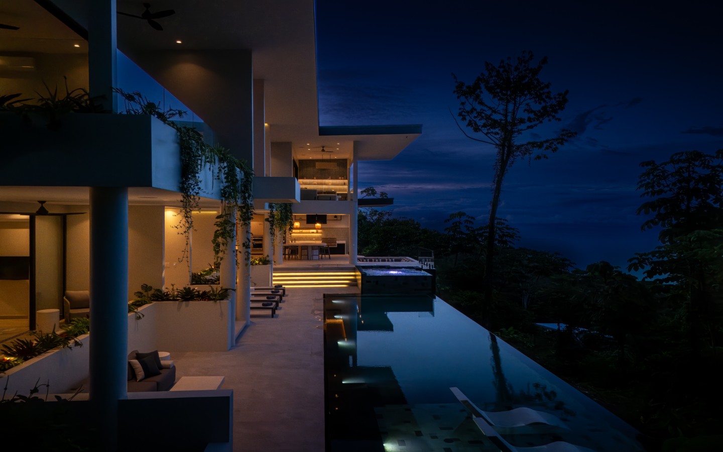 Set on 5,500 m² (1.36 acres), with a villa of 13,000 sq ft Acqua Blu is more than a home. It is a stage for nine months of sunsets each year, a sanctuary alive with birds, monkeys, and the rhythms of the jungle. The ideal elevation of 1300 feet ensures year round breezes and sets the stage for the most magical vistas.