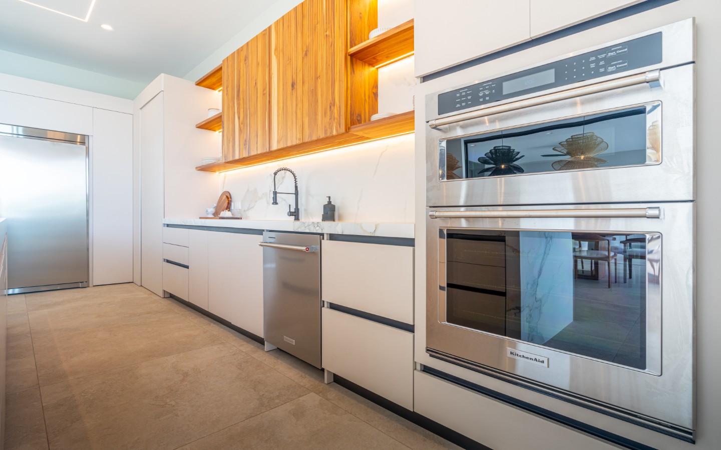 · A chef’s kitchen with Invisacook induction and double stainless refrigerators.