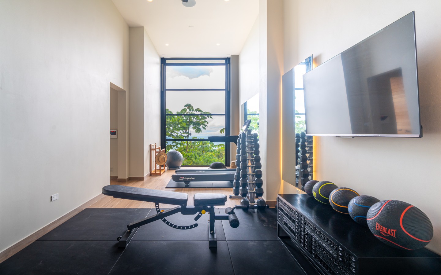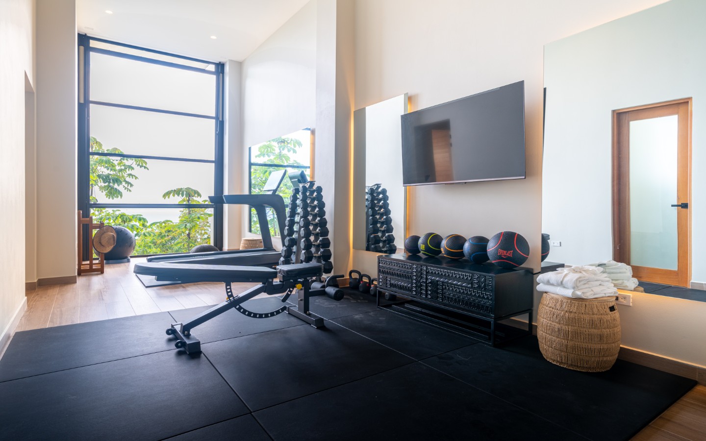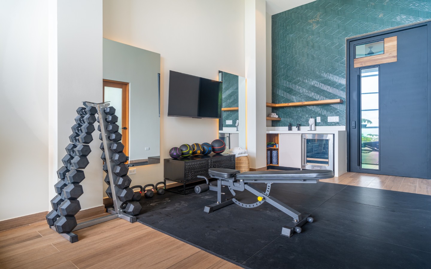 · A wellness center with gym, cold plunge, steam, and sauna.