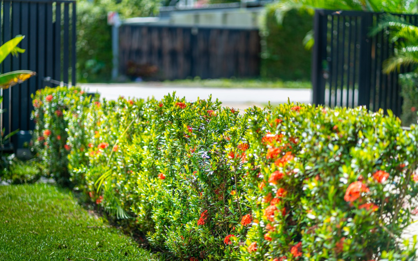 Each of the three bedrooms includes air conditioning, and the master bedroom enjoys its own private bath and closet. Ceiling fans are placed throughout the home to enhance comfort, while thoughtful landscaping and an electric gate add to the sense of privacy and security.