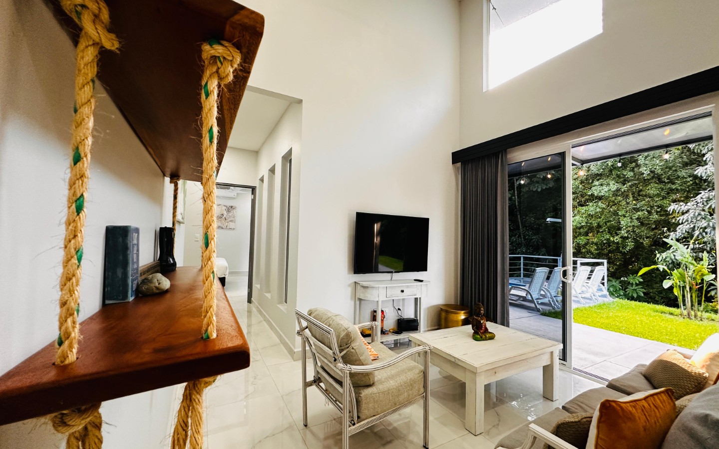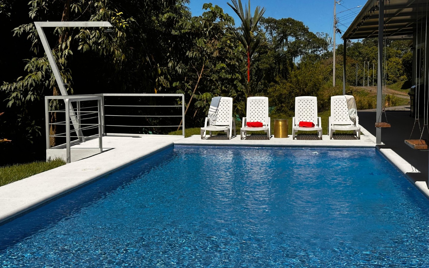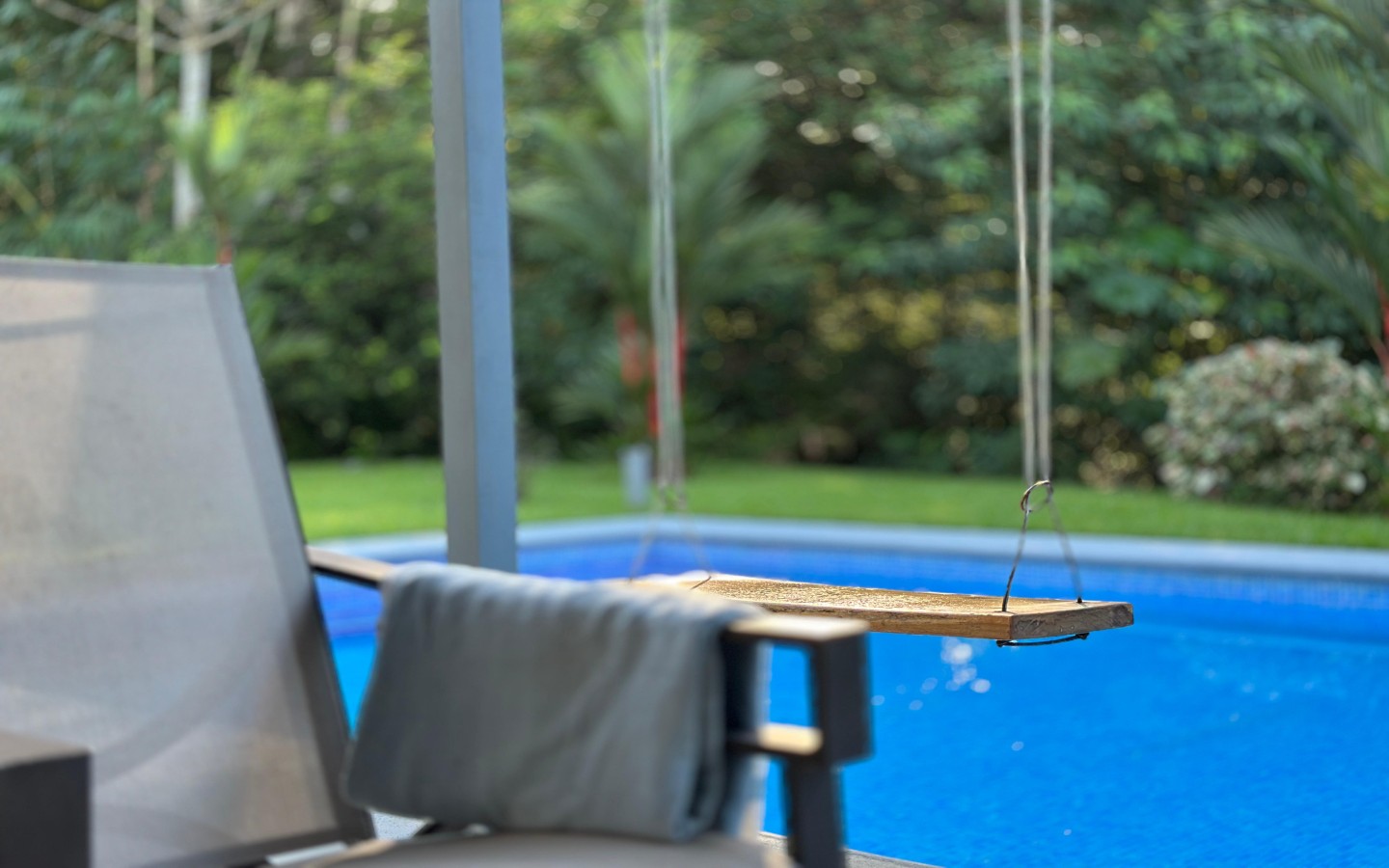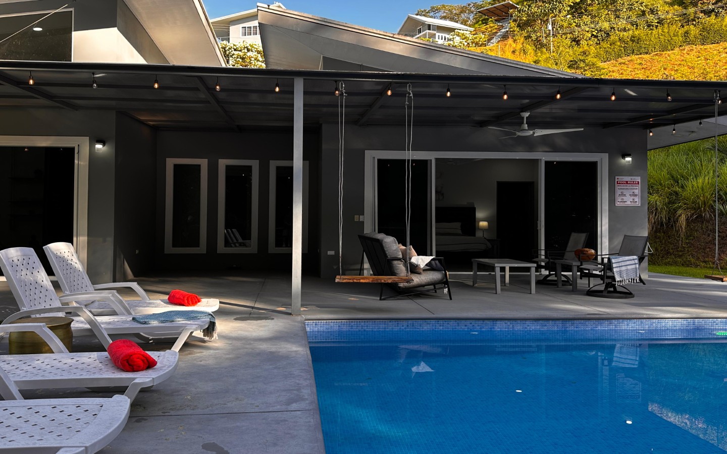 Outdoors, the large covered terrace is the perfect spot to enjoy your morning coffee while listening to the soothing sounds of the creek and the calls of tropical birds while you sink into the comfy sofa or playfully swing over the pool. The surrounding forest enhances the sense of seclusion while still being conveniently located near Uvita’s beaches, shops, and dining.