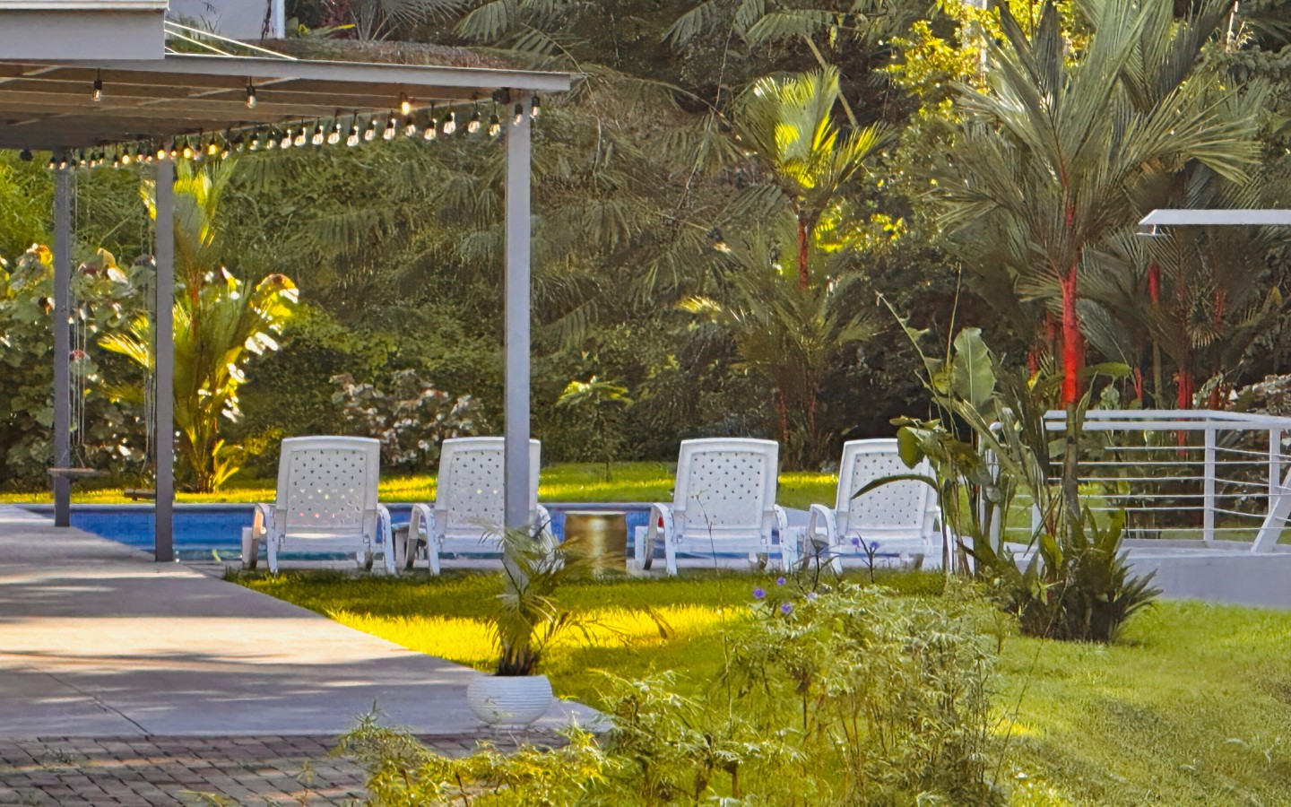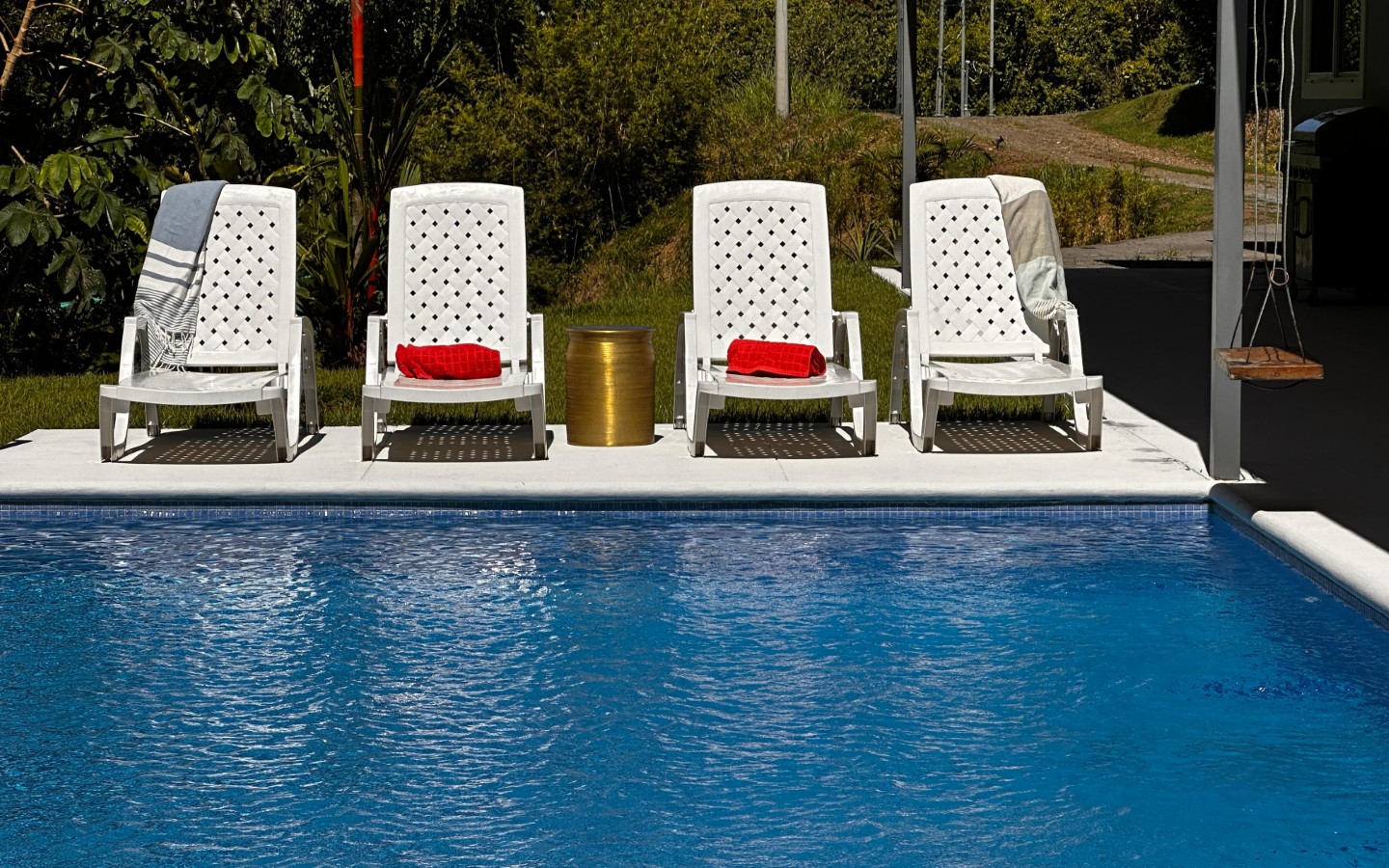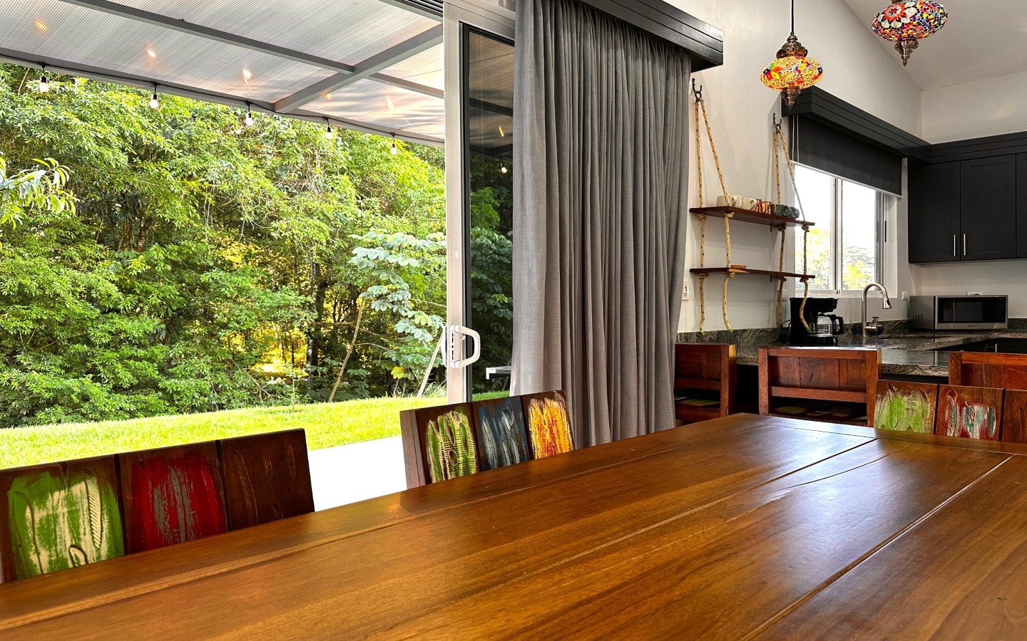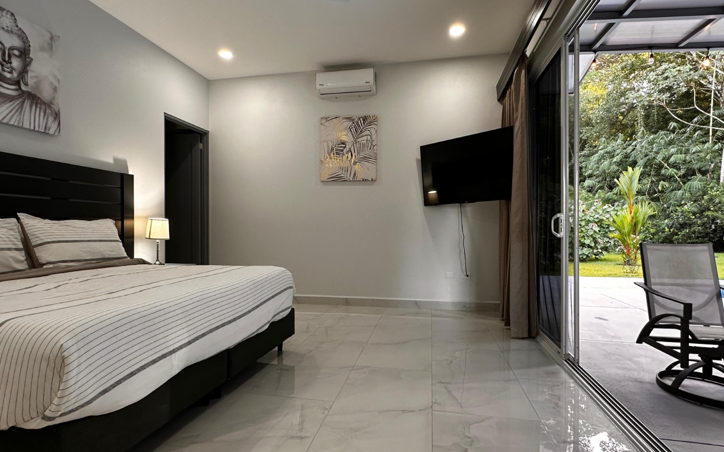 Outdoors, the large covered terrace is the perfect spot to enjoy your morning coffee while listening to the soothing sounds of the creek and the calls of tropical birds while you sink into the comfy sofa or playfully swing over the pool. The surrounding forest enhances the sense of seclusion while still being conveniently located near Uvita’s beaches, shops, and dining.