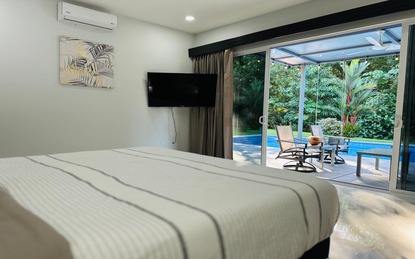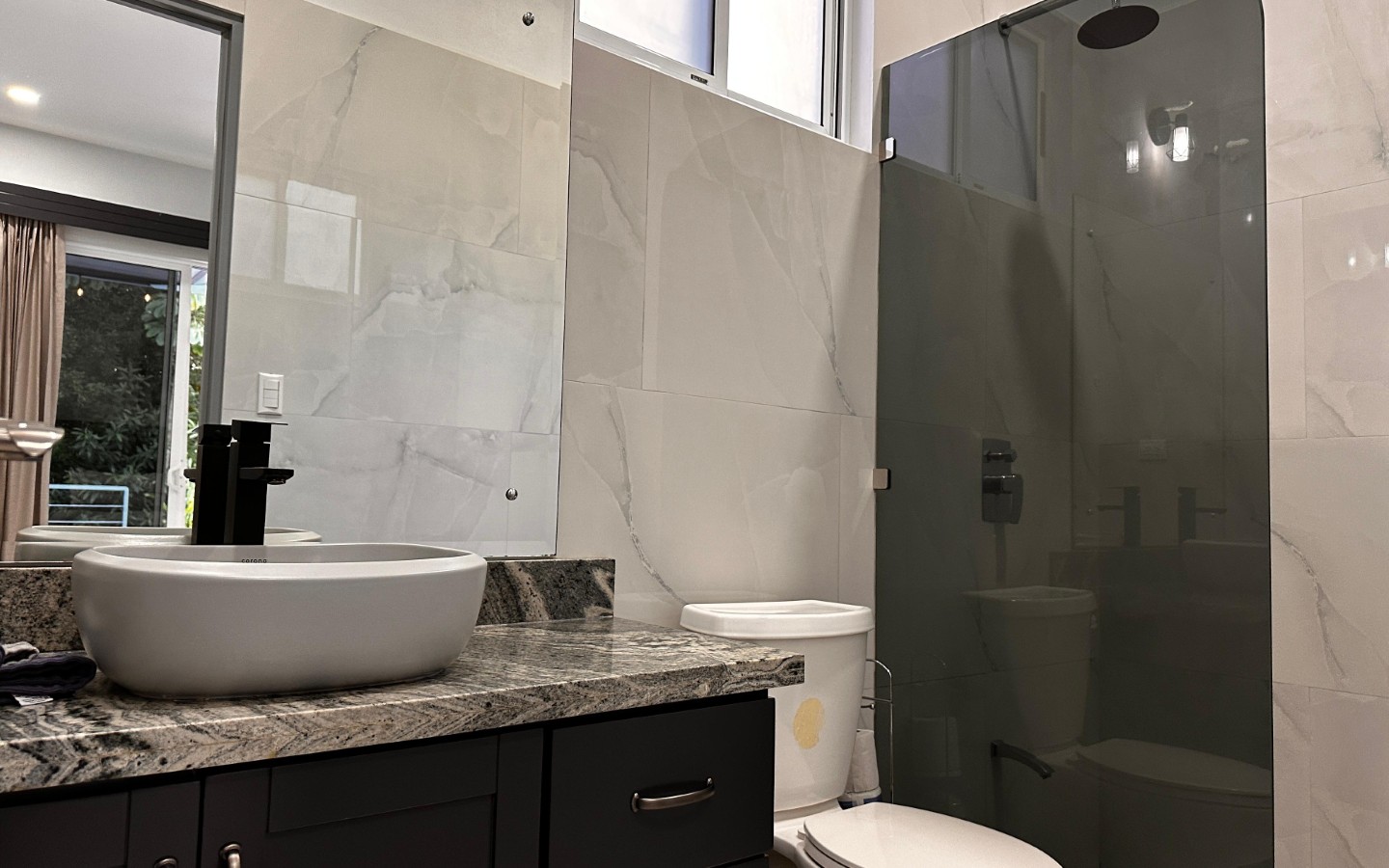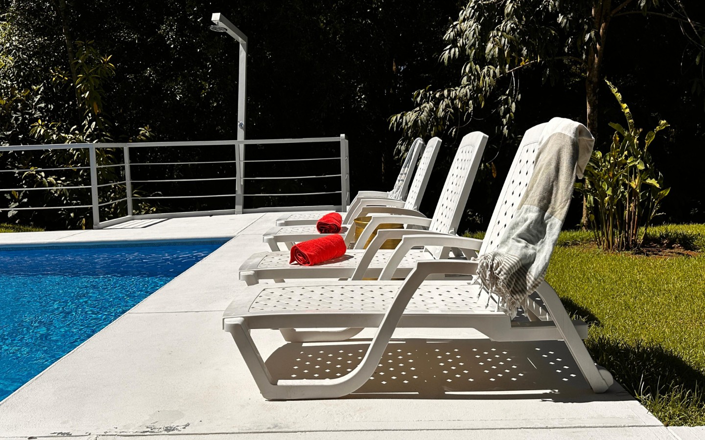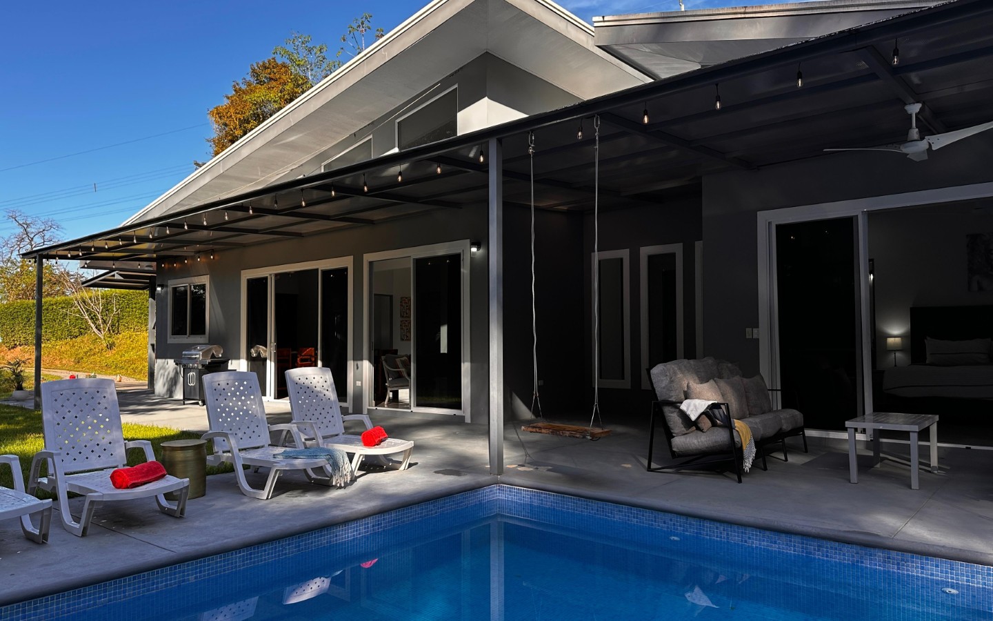 Outdoors, the large covered terrace is the perfect spot to enjoy your morning coffee while listening to the soothing sounds of the creek and the calls of tropical birds while you sink into the comfy sofa or playfully swing over the pool. The surrounding forest enhances the sense of seclusion while still being conveniently located near Uvita’s beaches, shops, and dining.