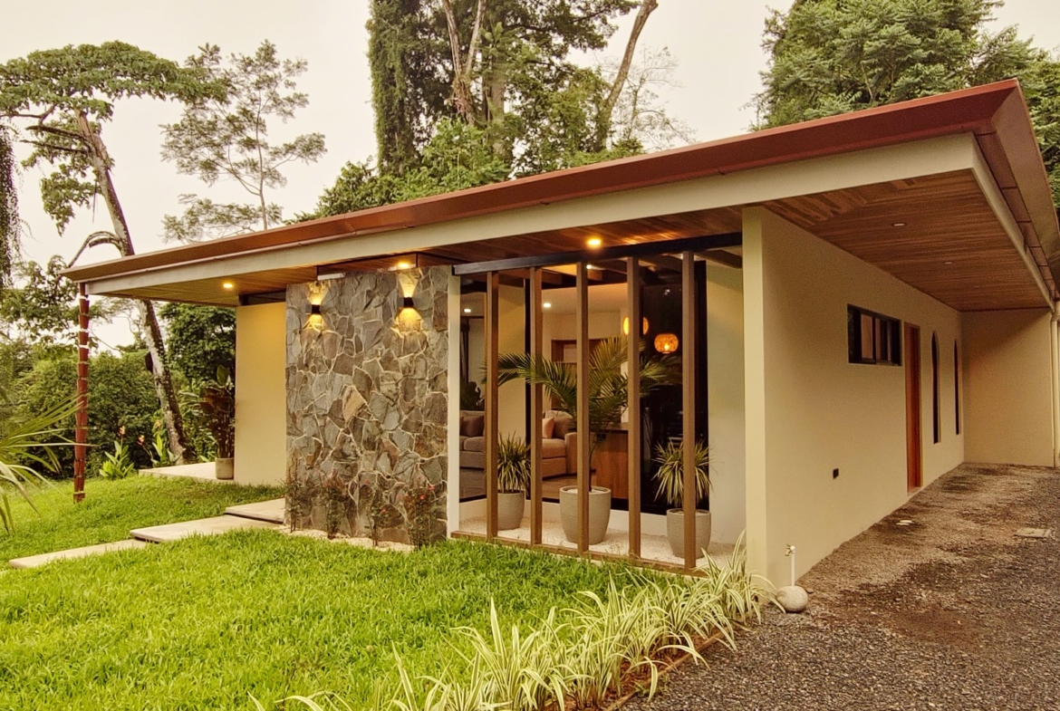 Cute gardens, creek access, high and fresh ceilings, A/Cs, king size beds, main appliances and fully furnished home is just a bit of what this detailed home will bring to new owners! Casa exudes elegance, style, and a commitment to connect with nature not only overlooking the exotic South Coastal Views, but it also boasts the Terraba/Sierpe mangrove forest and Drake Bay Jungles. Swim at the pool, walk and enjoy the fresh water of your own creek or simply breath and get a coffee while looking the Ocean Views from this “Elemental” Home! This pre-design beautiful home located in Ojochal will be ended by September 2023. Ojochal is only 15min South of Uvita and main town with banks and most important services.