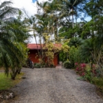 The downstairs of the main house has a separate entrance and consists of two bedrooms, each with an on-suite bathroom. The ample porch terrace overlooks the manicured grounds and has some ocean view as well. From this terrace there is a concrete walk way down to the amazing pool area which feels like a secluded sanctuary in the jungle. Beautiful views from the pool and rancho wood deck.