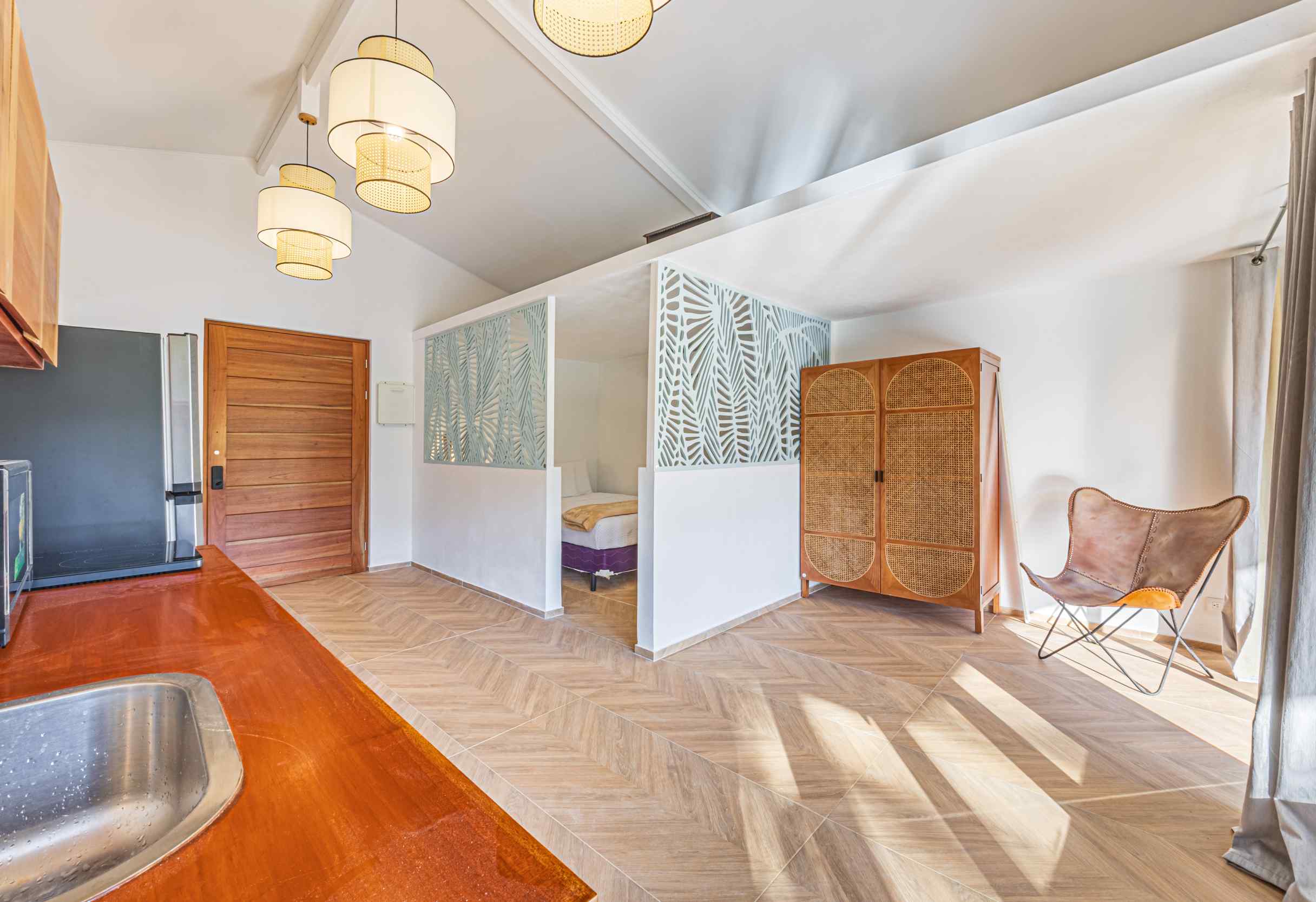 The guest casita was built more recently and a more modern design. Located with enough distance from the main house for complete privacy it’s a great place for friends and family to stay or even rent out separately on Airbnb or long term. The large covered terrace has outstanding ocean and coastline views with sunset much of the year.