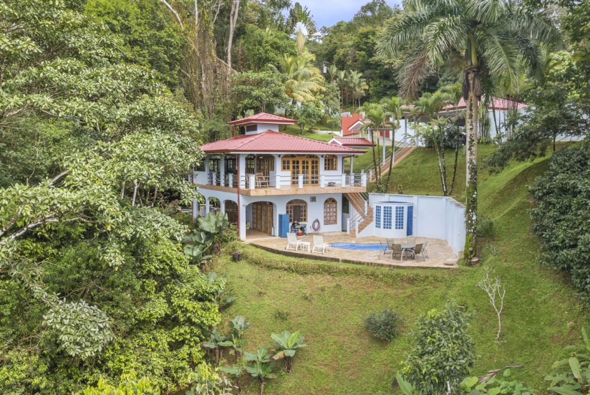 Ocean View 2-Bedroom with Pool, Solid Construction & Jungle Vibe plus Additional Building Lot in Lagunas above Dominical Costa Rica