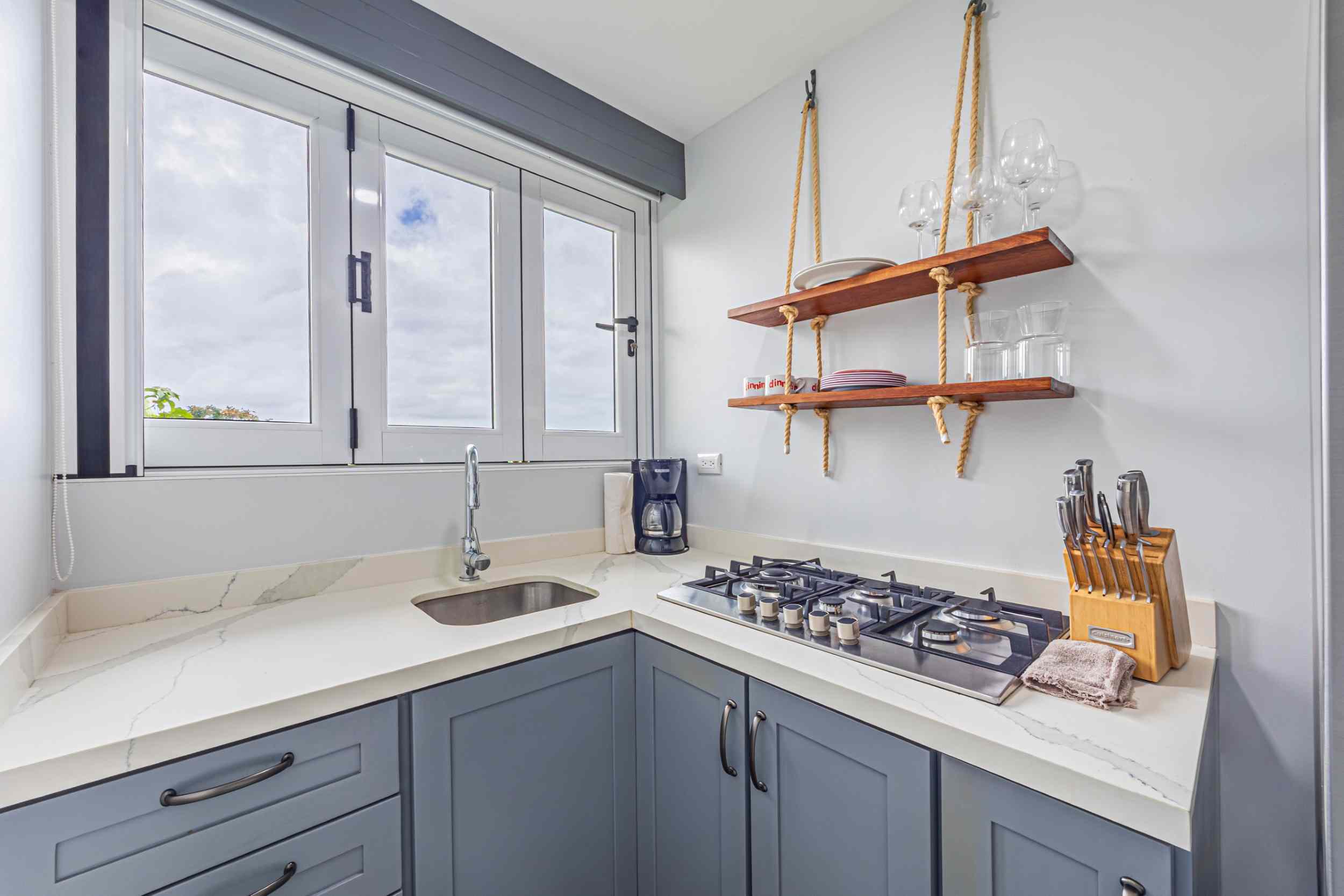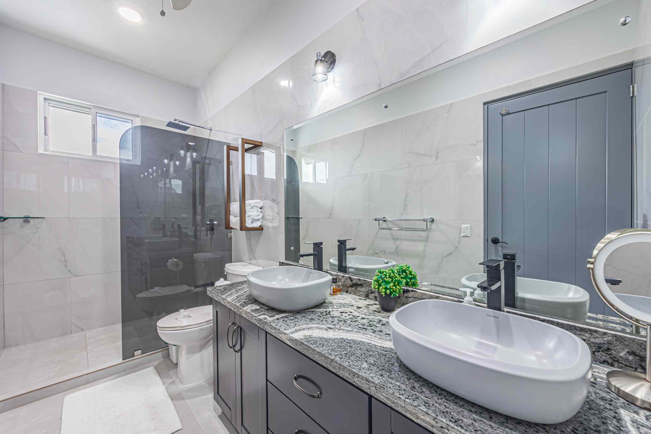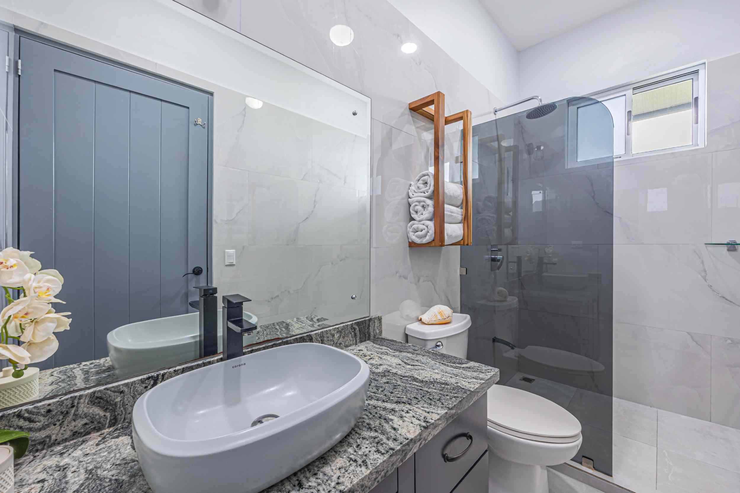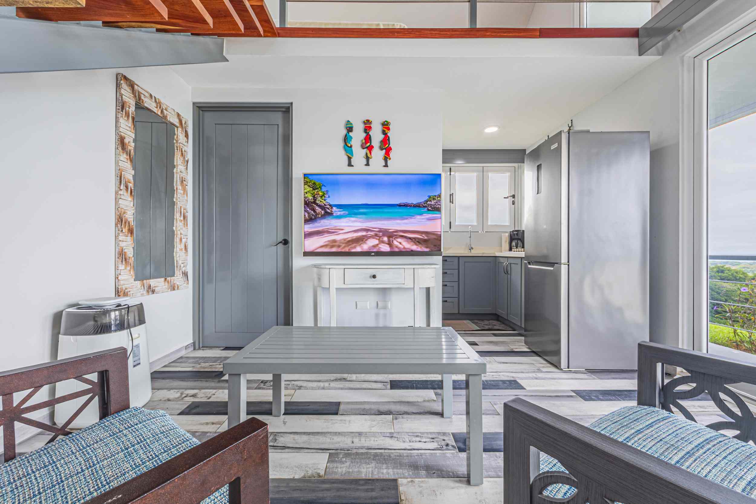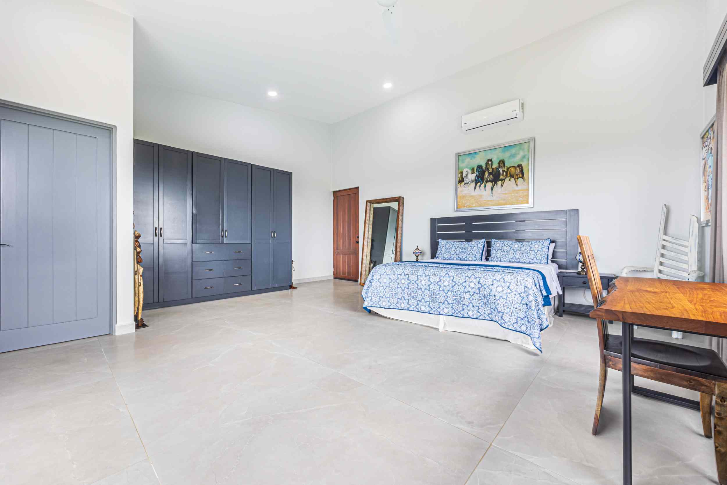 The master bedroom, a place where the weary find solace, offers a view that could only be described as divine. From the bed, you can watch the ocean’s colors shift from the soft pastels of dawn to the deep blues of midday, and finally to the fiery oranges and purples of the setting sun. Above, the fourth bedroom, with private access, provides a perch even higher than the rest, where the ocean stretches out before you, a blanket of turquoise and sapphire, dotted with the distant silhouette of Caño Island.