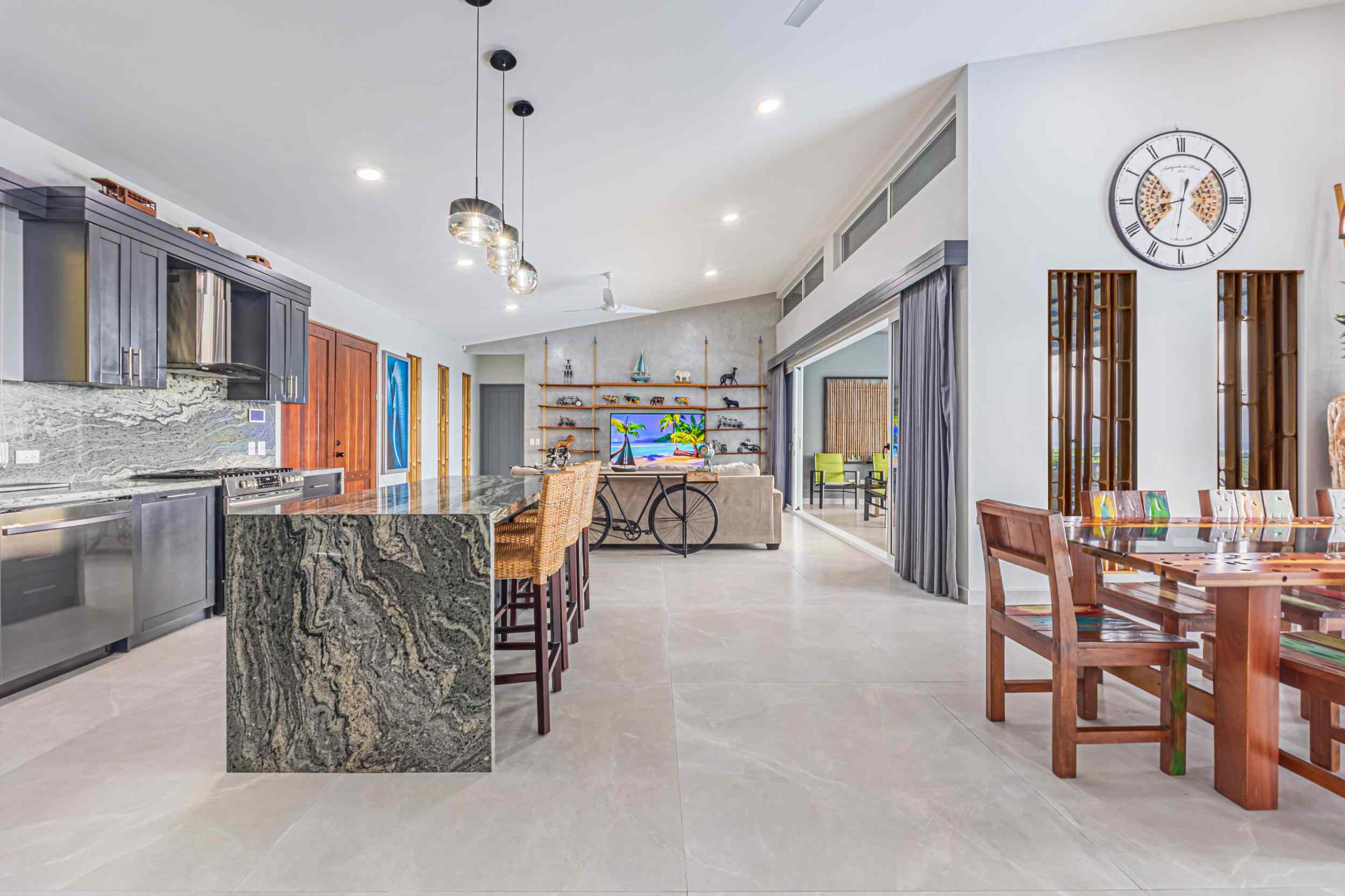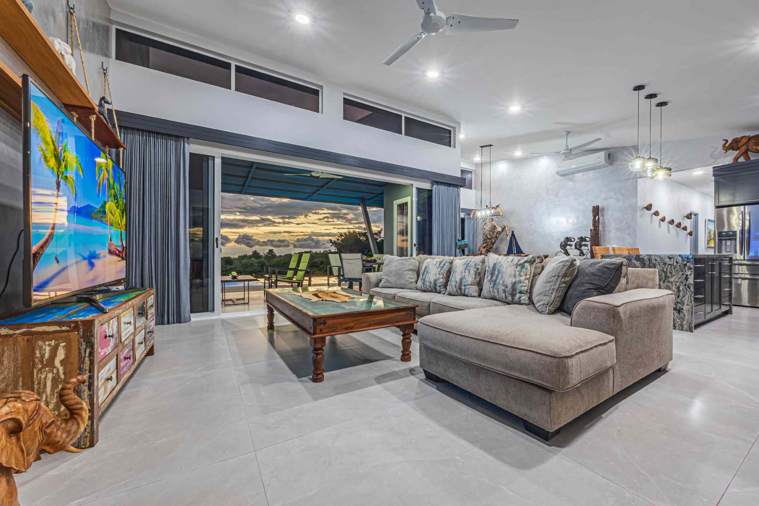 At the home, life is not just lived but savored. Every moment is a celebration of the beauty that surrounds you, from the ever-present toucans to the changing hues of the ocean. It’s a place where the luxuries of modern living meet the timelessness of nature, where each day ends with a sunset that sets the sky ablaze, and each night begins with the soft lullaby of the waves below.