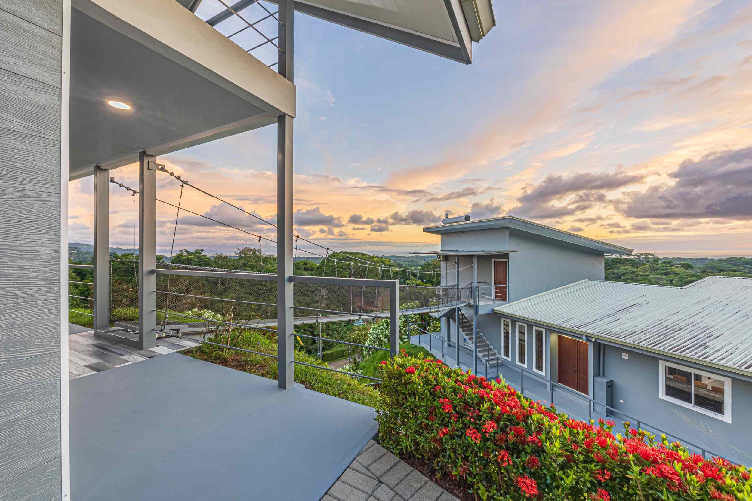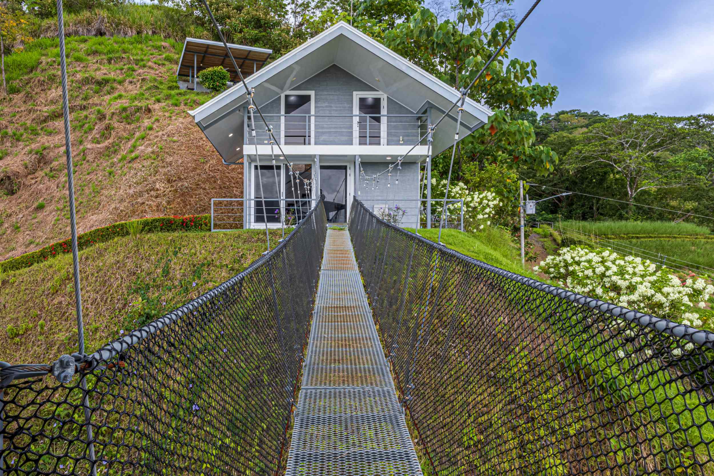 Step outside, and you’re met with a scene straight from a dream. The infinity-edge pool merges with the horizon, its waters seemingly spilling into the sky, while the expansive deck invites you to sit and stay awhile, to lose yourself in the rhythm of the tides. And just when you think you’ve seen it all, a unique rope bridge beckons, leading you to the one-of-a-kind guest suite. Here, adventure and tranquility meet, as the suite offers not just a place to rest, but a reminder of the wild, untamed beauty that is Costa Rica.