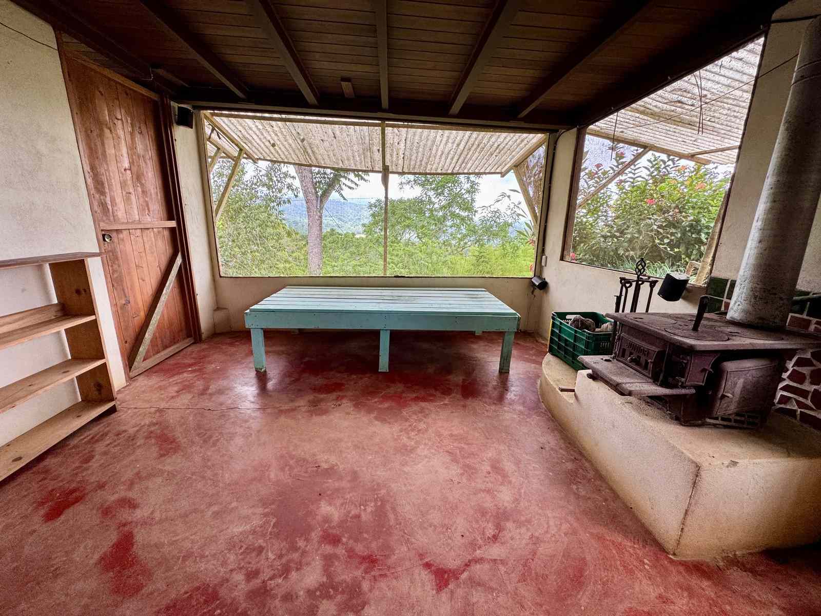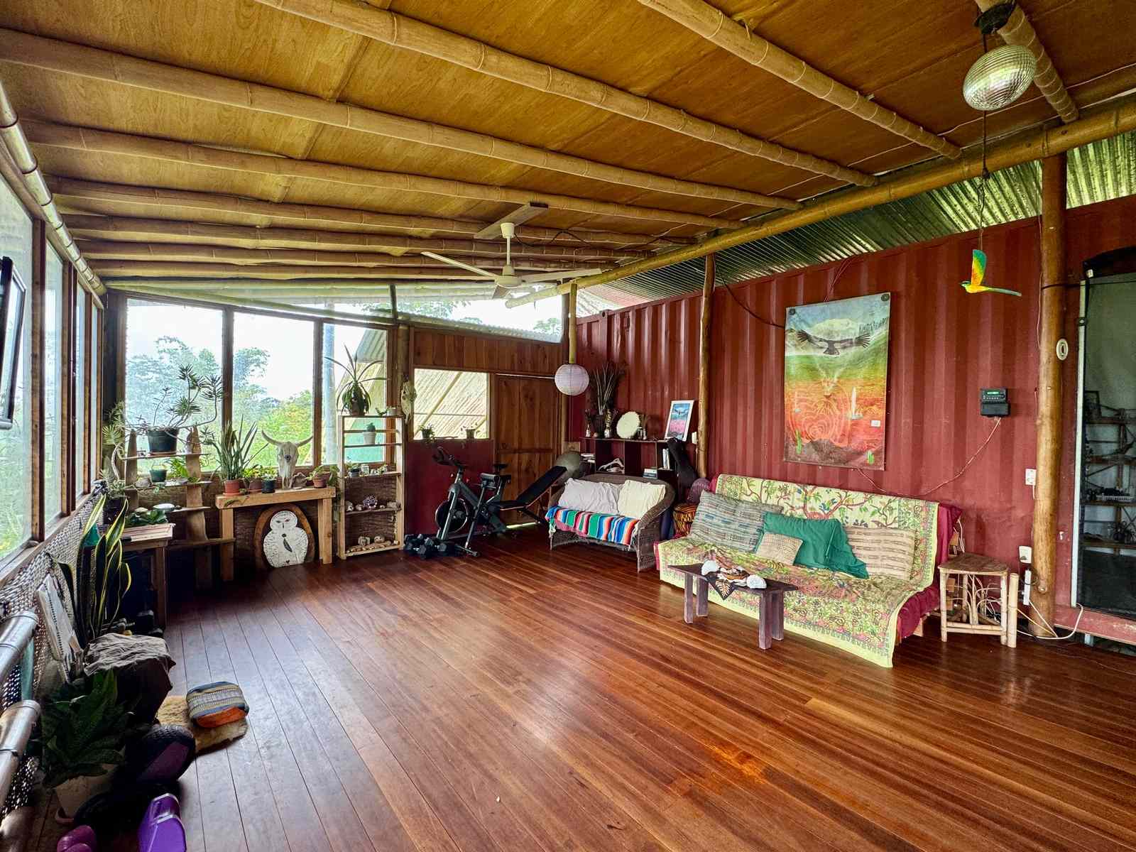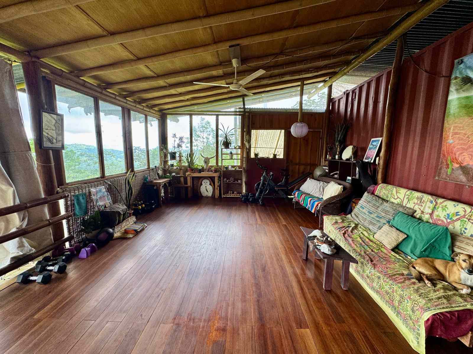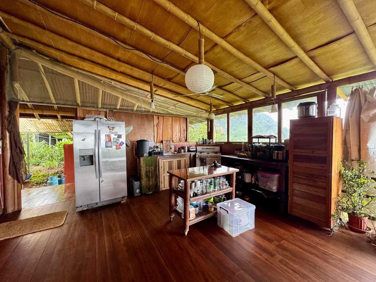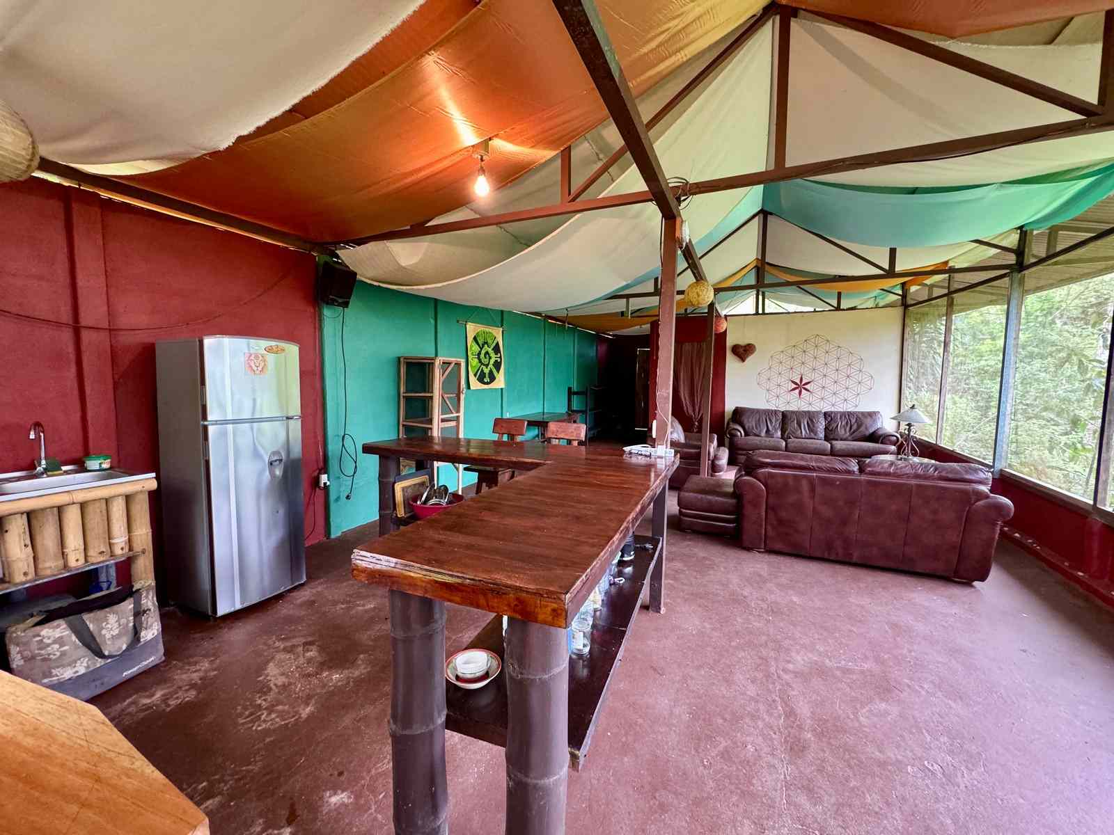 The main home is built from a converted container, thoughtfully designed with the structure and foundation to support a future second floor. It currently features 2 bedrooms and an open-concept living area with a wooden deck under roof, where you can relax and enjoy the stunning mountain views and the peaceful atmosphere.