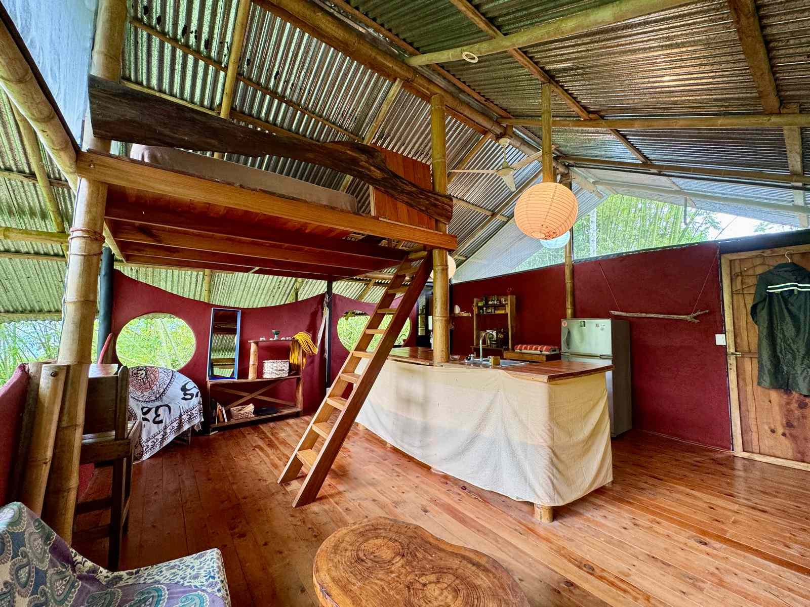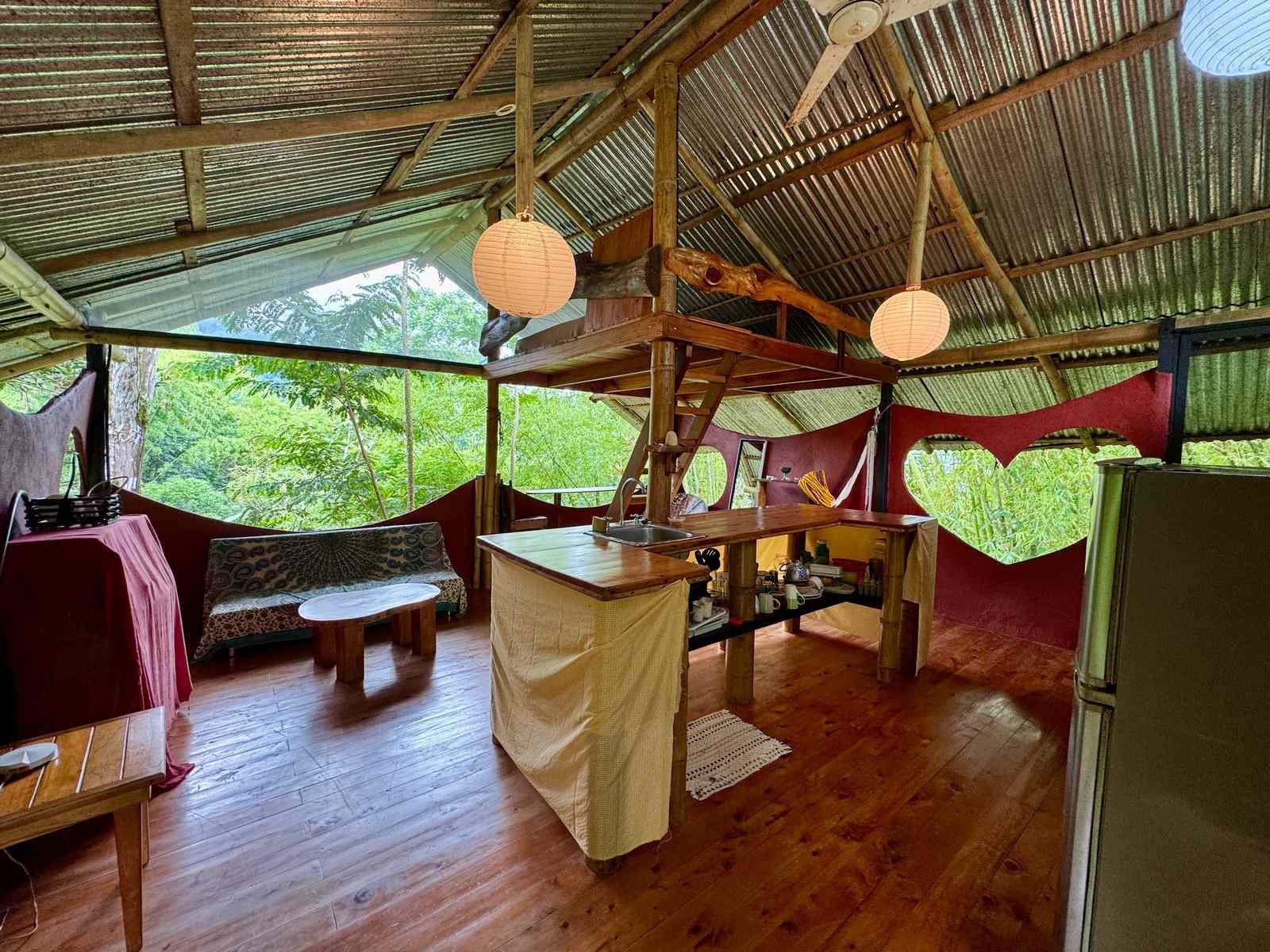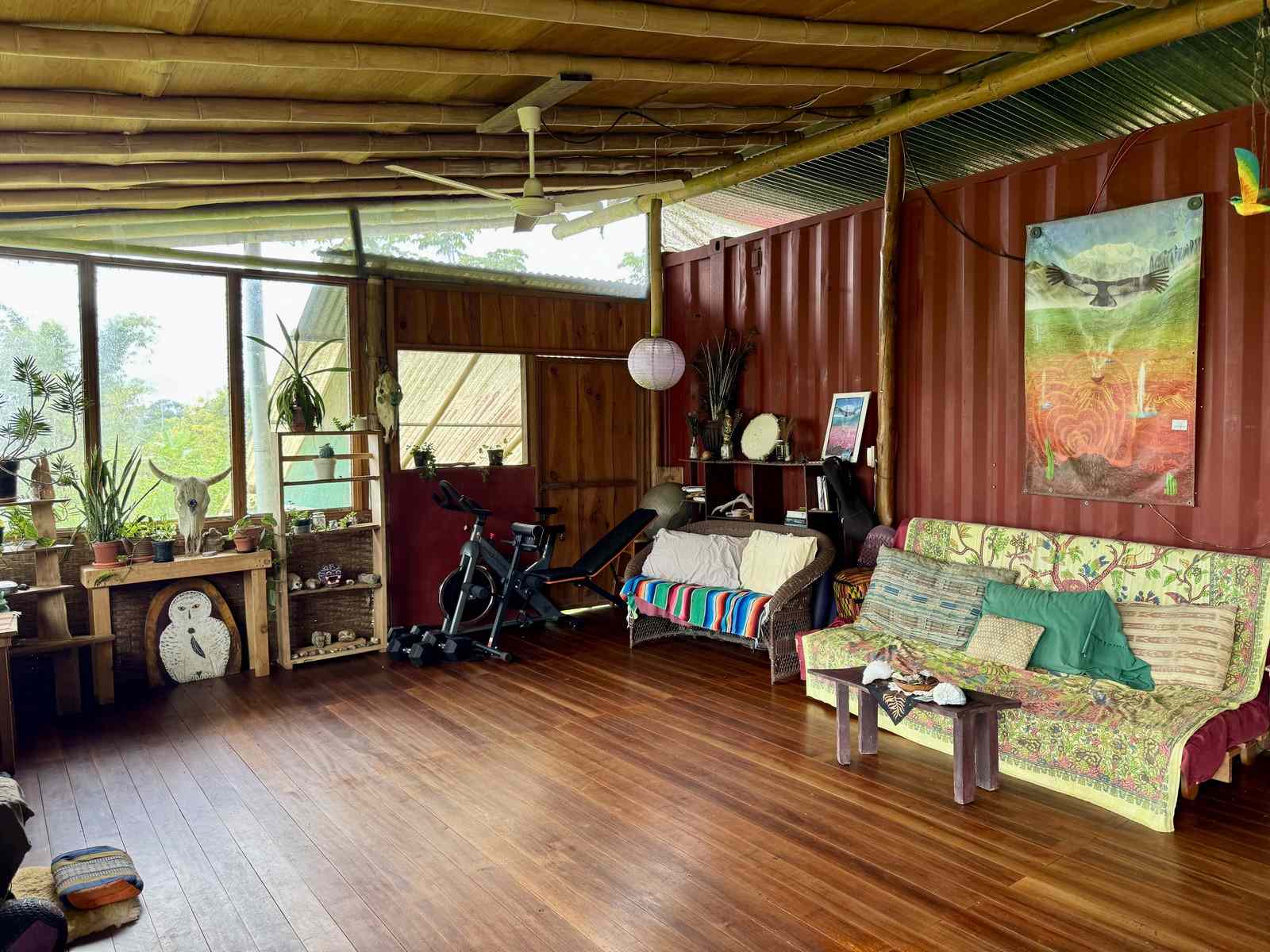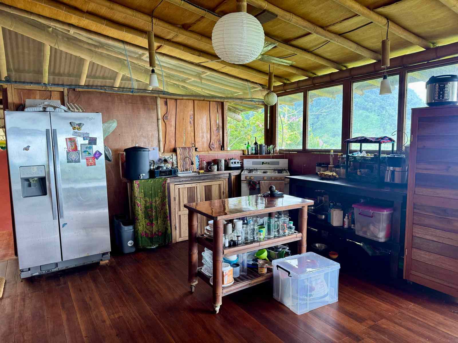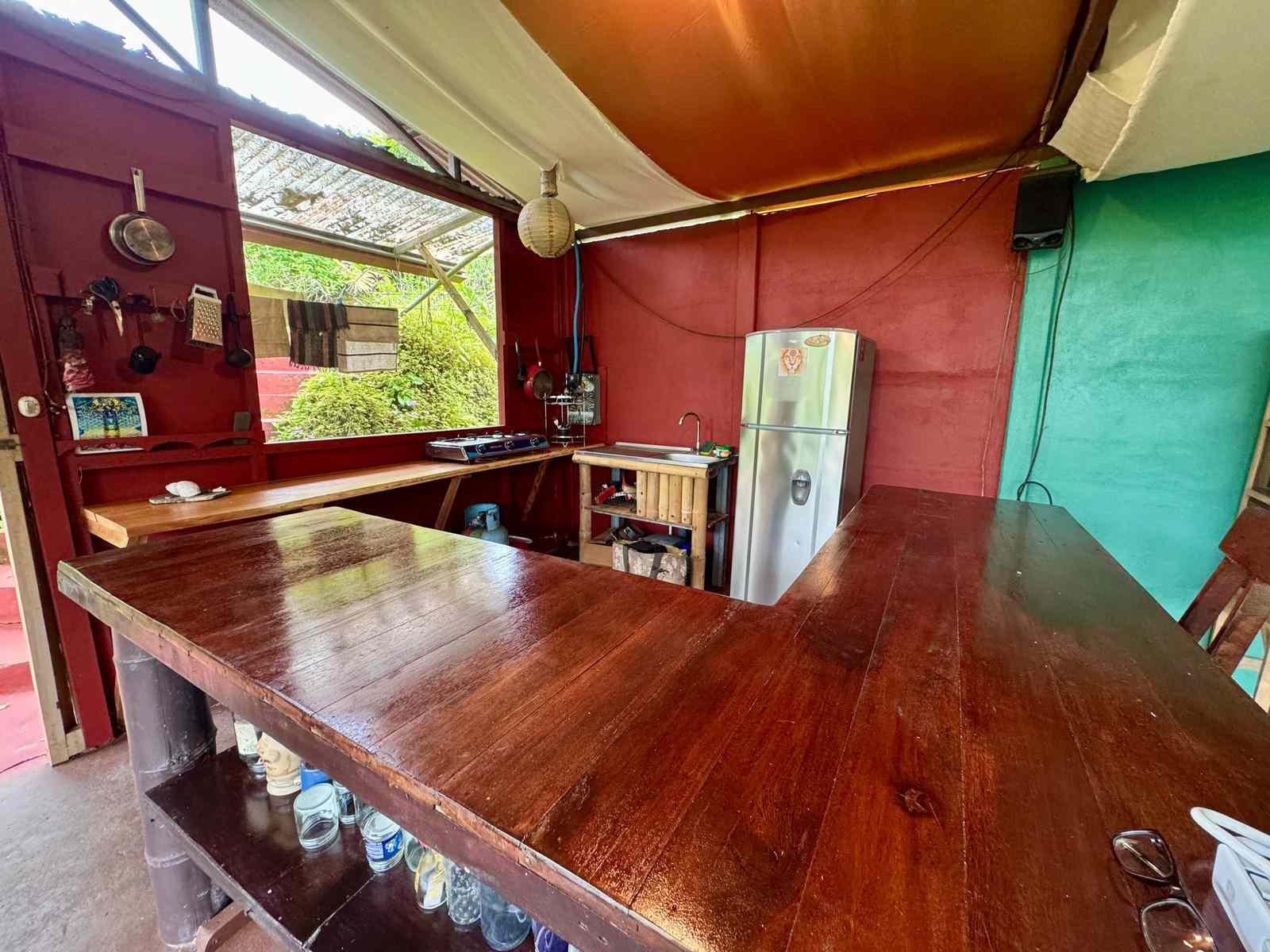 The main home is built from a converted container, thoughtfully designed with the structure and foundation to support a future second floor. It currently features 2 bedrooms and an open-concept living area with a wooden deck under roof, where you can relax and enjoy the stunning mountain views and the peaceful atmosphere.