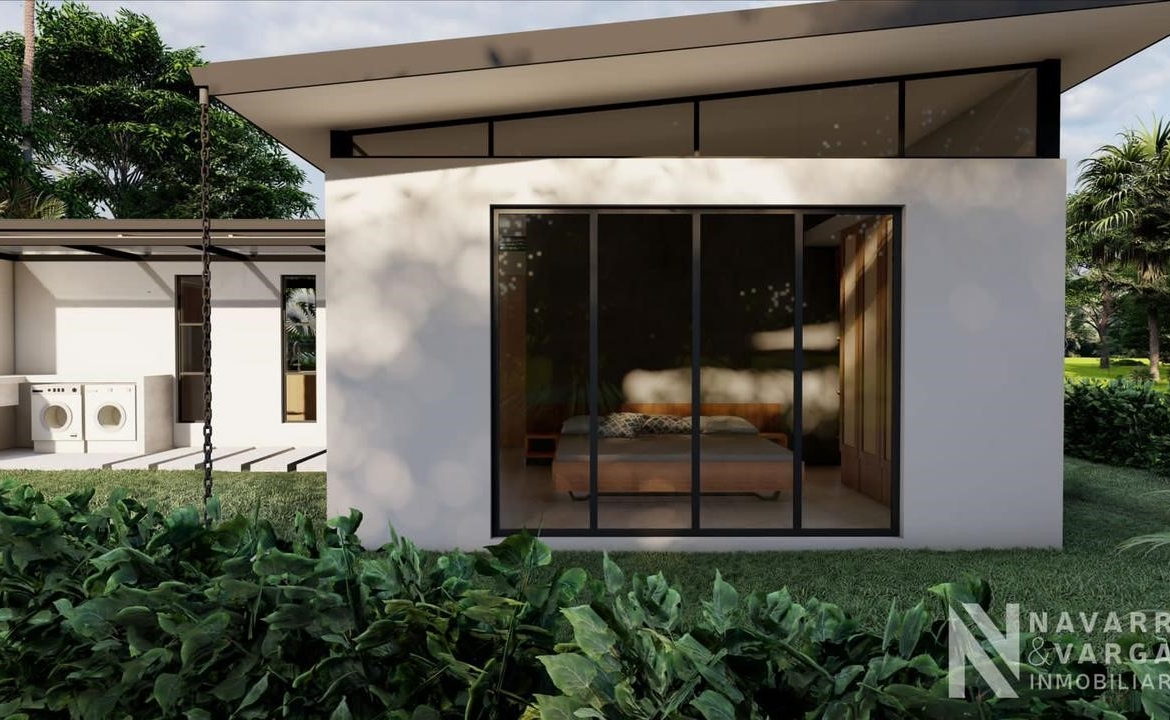 The master bedroom offers a stylish ensuite bathroom, with an elegant design creating a private retreat for relaxation and rejuvenation. Large glass windows in the suite will provide an abundance of natural light and stunning views of the surrounding tropical landscape. The solid concrete construction and high ceilings will contribute to a fresh and comfortable atmosphere throughout the house, giving a cozy impression. The property also has room to build one or two additional bedrooms if needed, with options to add one in the front and one in the back of the house.
