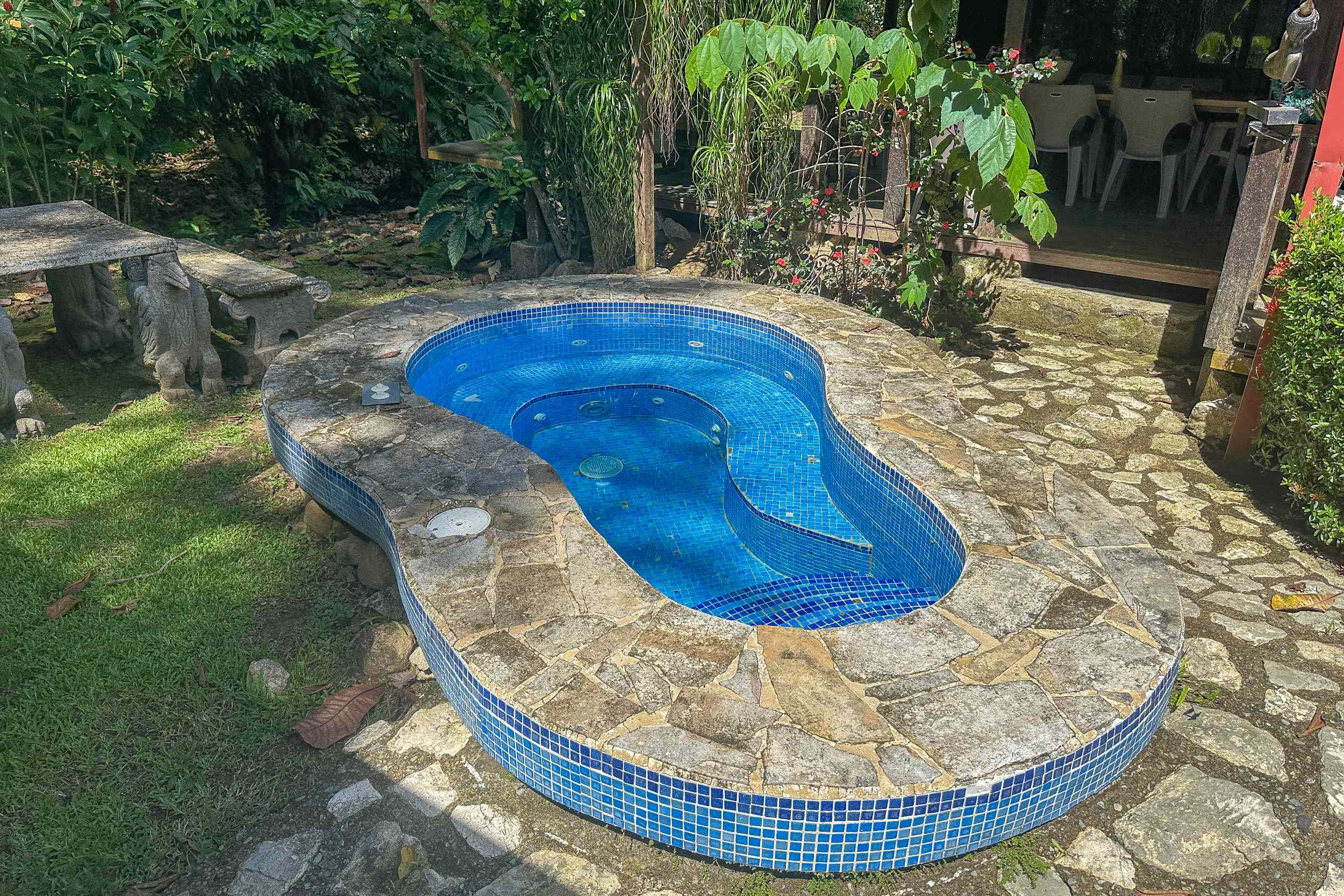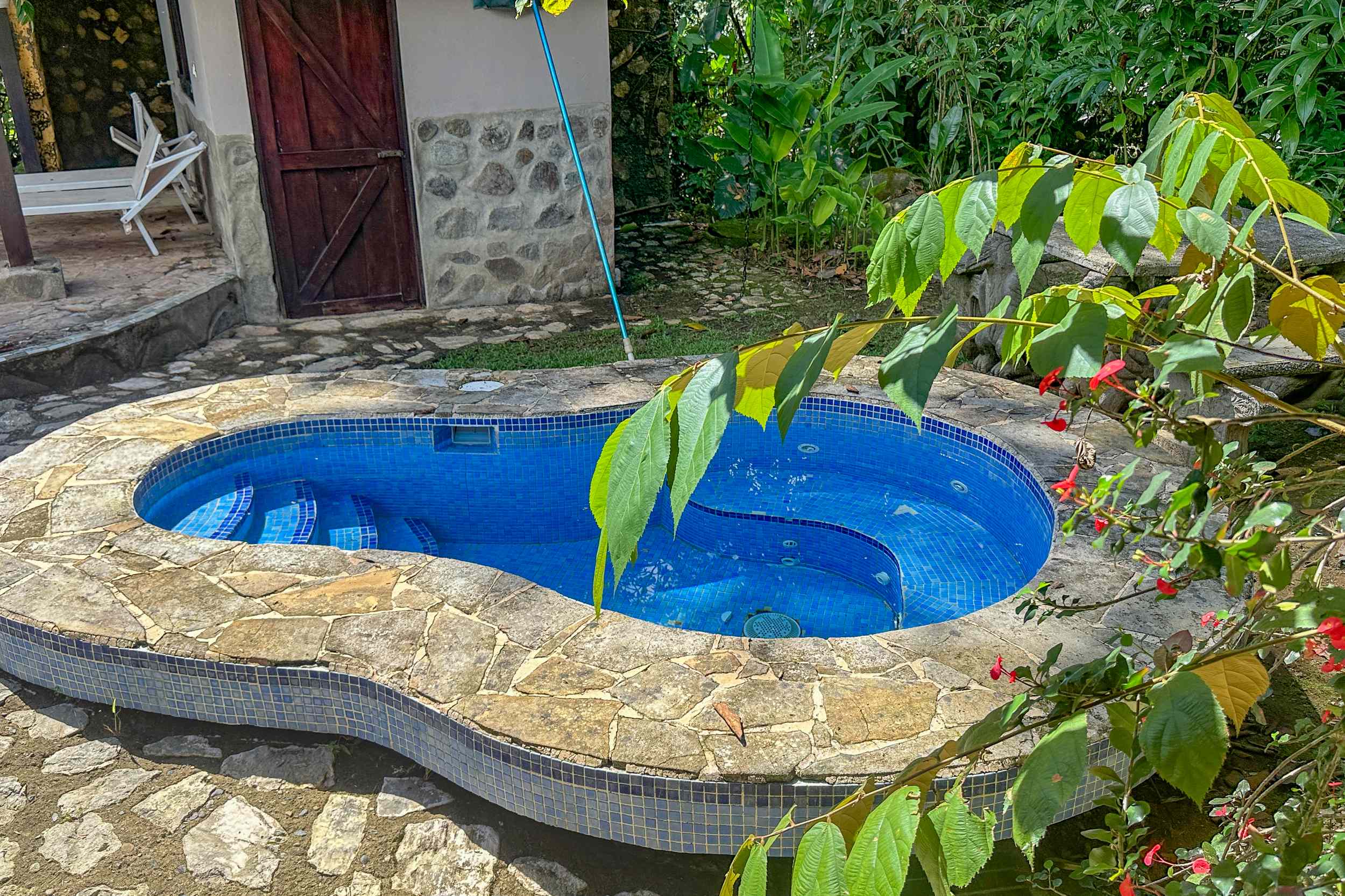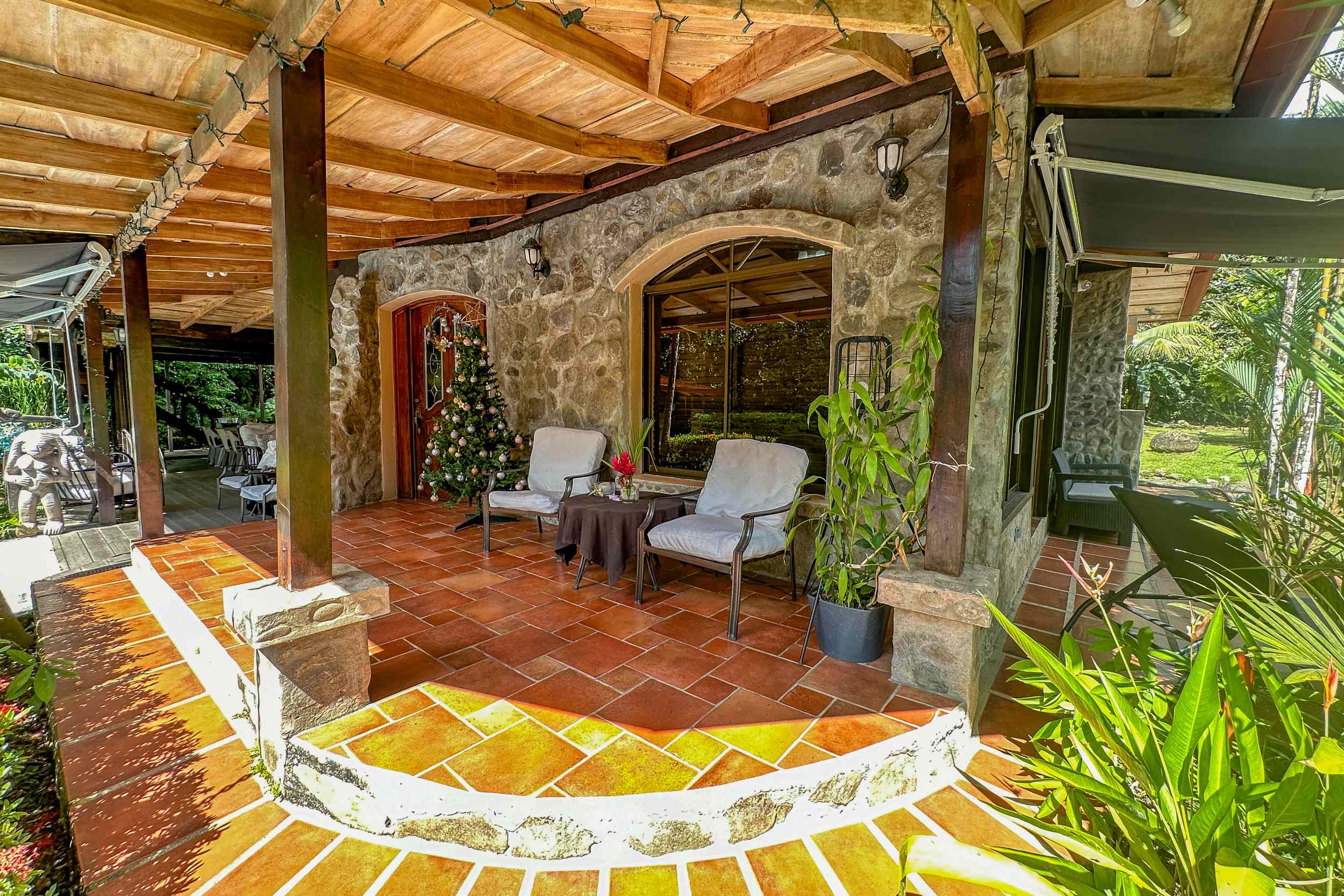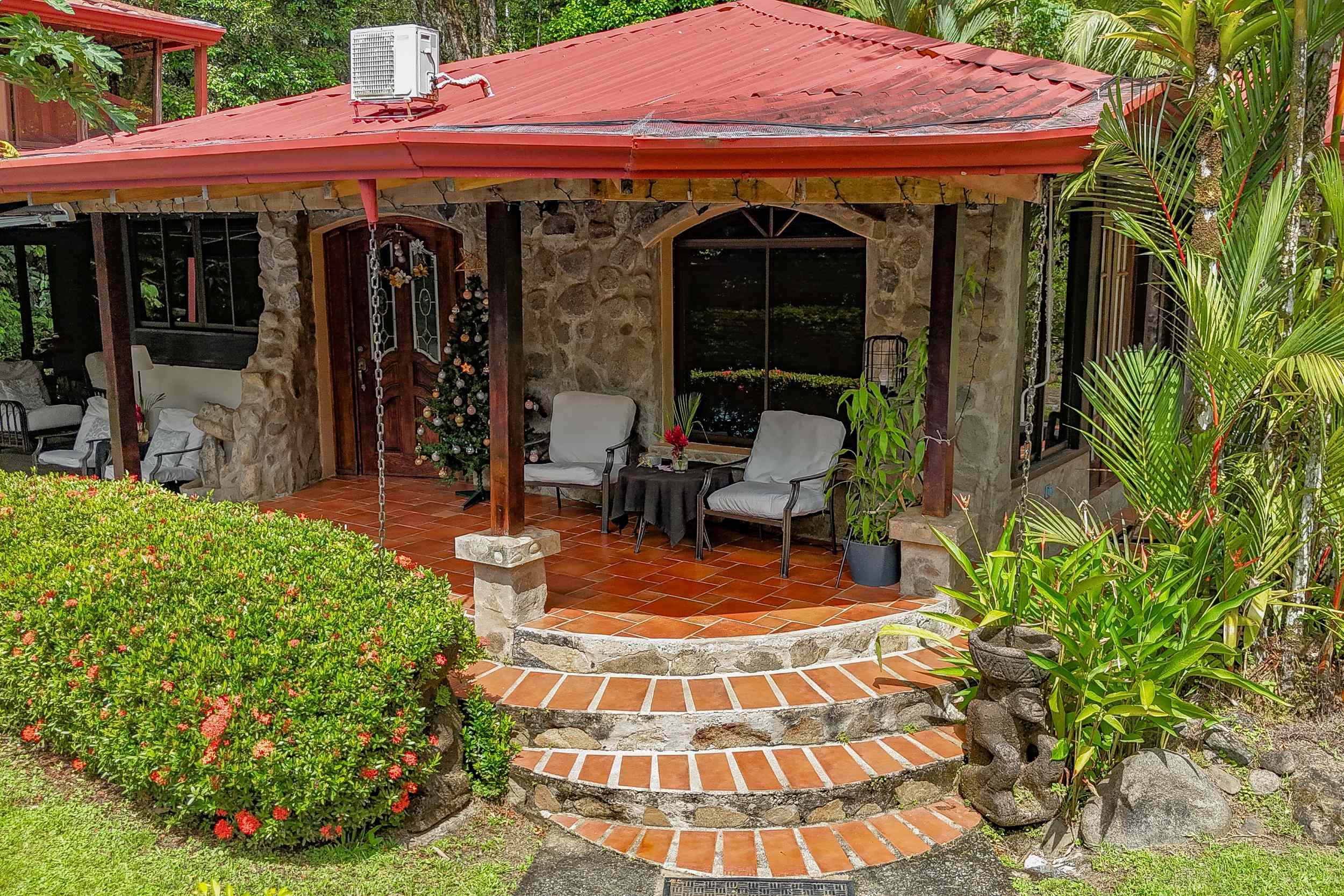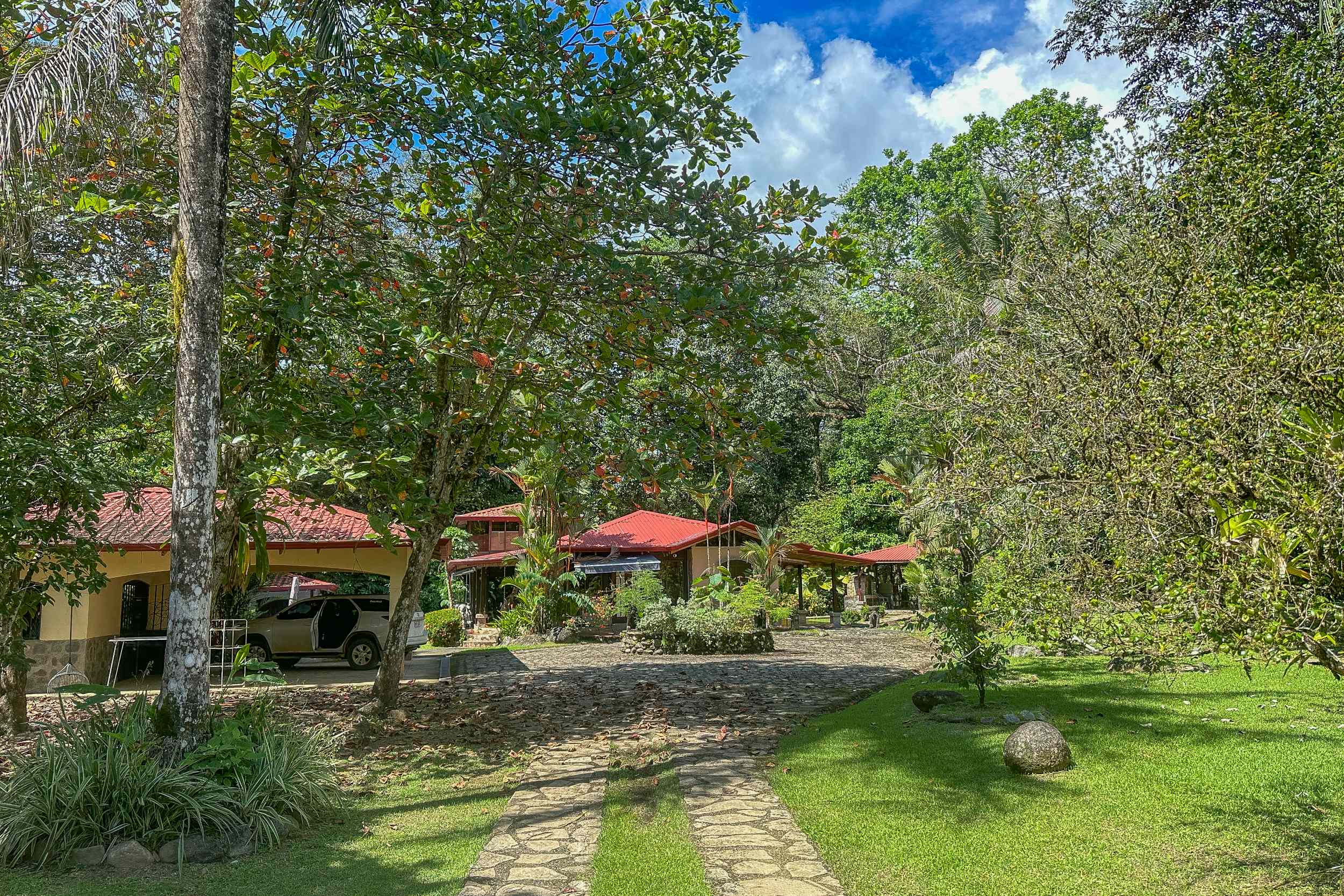 A riverfront 3-bed home on a large property with swimming pool, jacuzzi, carport and bodega, huge manicured lawn & tilapia pond but right inside the Cosmopolitan town of Ojochal!