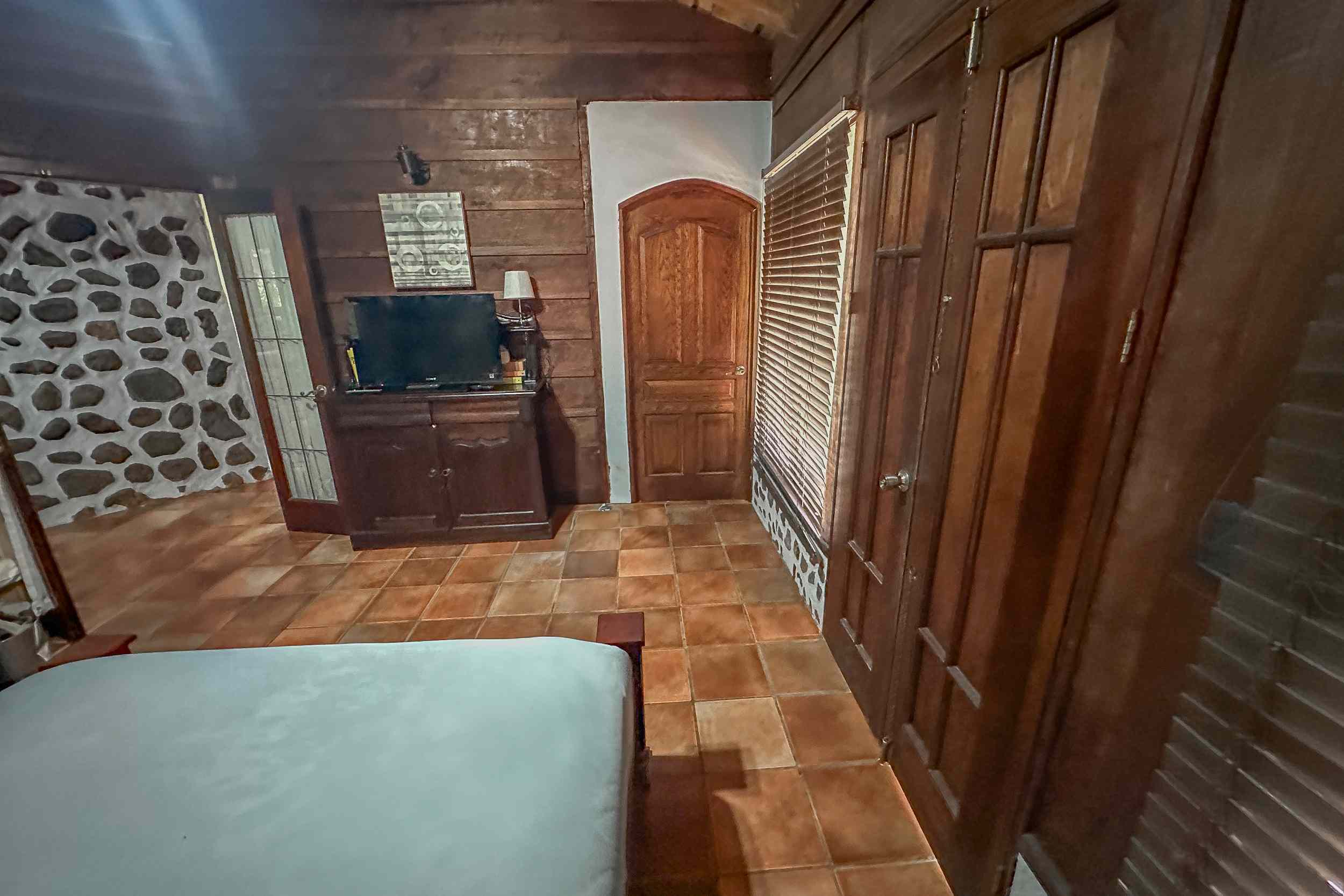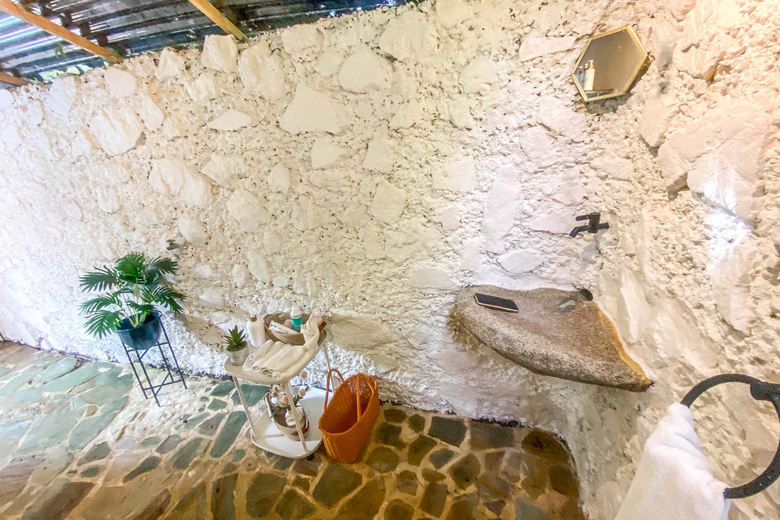 The beautifully designed home, with stone-accented walls that match the rustic driveway, holds 3 spacious bedrooms, each with a private ensuite and A/C. The layout of the home ensures ample privacy for each bedroom, making the home idea for families, guests or as a holiday rental. A crow’s nest, located on top of the house, is accessed via an external stairway and a perfect place to relax, meditate or be inspired. Current owners are using the crow’s nest as a music studio, but it could easily accommodate a painter, crafts artist, remote worker or even overnight guests.