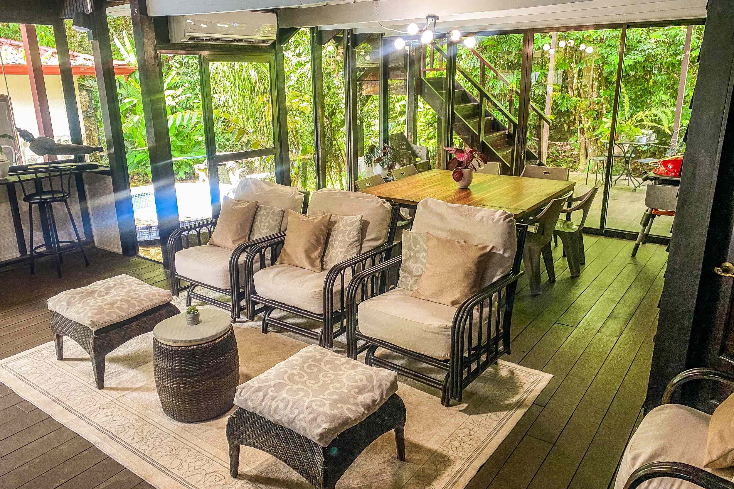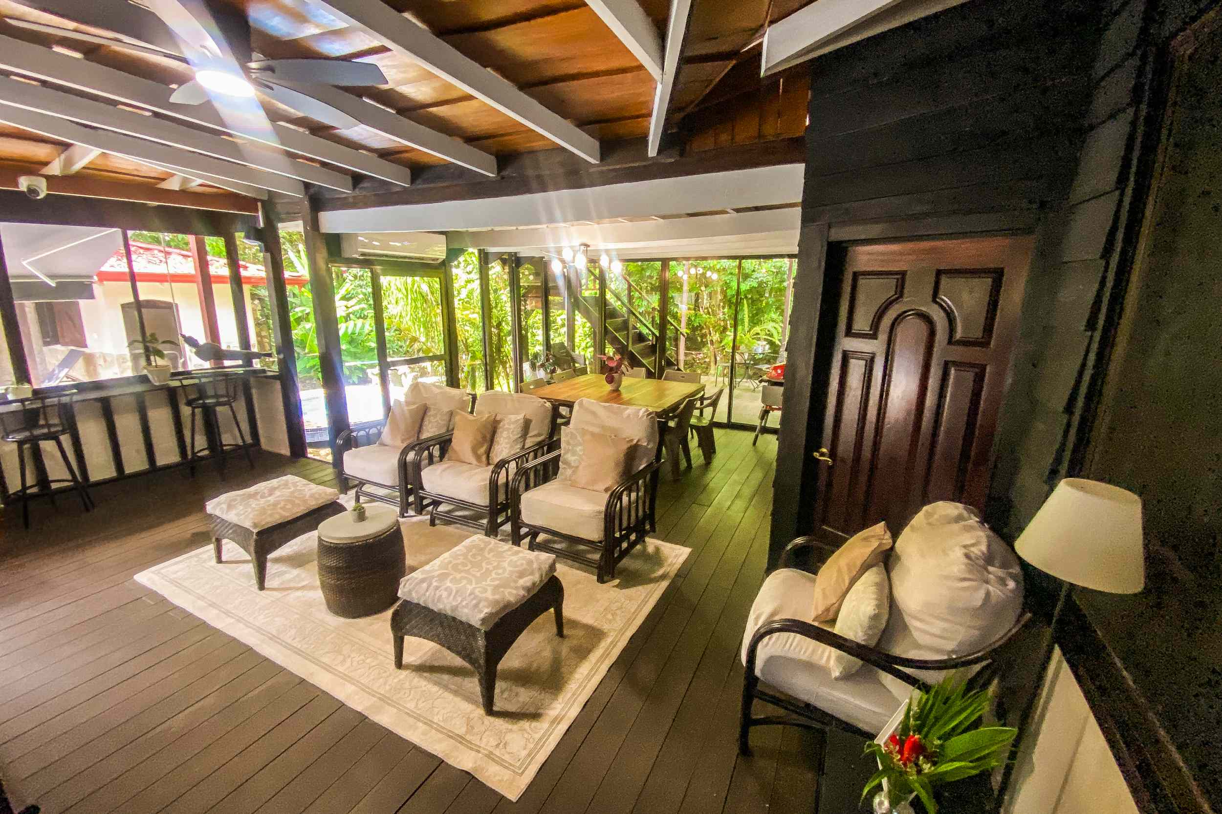 Enjoy the peaceful sounds of the flowing private river right at your doorstep. This is a nature lover’s paradise – the tranquil atmosphere, burbling river and jungle surrounds will ensure the famous Tico animals will make your home – their home. Toucans, monkeys, macaws, sloths, blue morpho butterflies and scores of other critters will be your constant companions. The house, beautifully blending into the greenery, blurs the line between living space and nature.