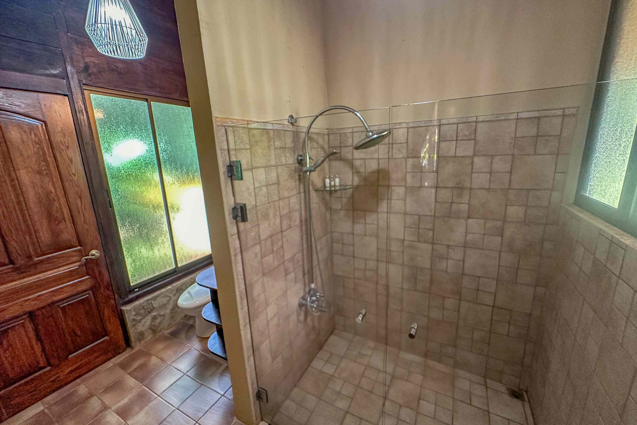The large pool sits adjacent to the patio and invites you for a swim or splash. It is conveniently located just steps away from the house. The accompanying wading pool provides a safe space for children or a chill-out spot for adults who prefer to lie back and enjoy the refreshing waters. A toilet block, next to the pools, provides convenience.