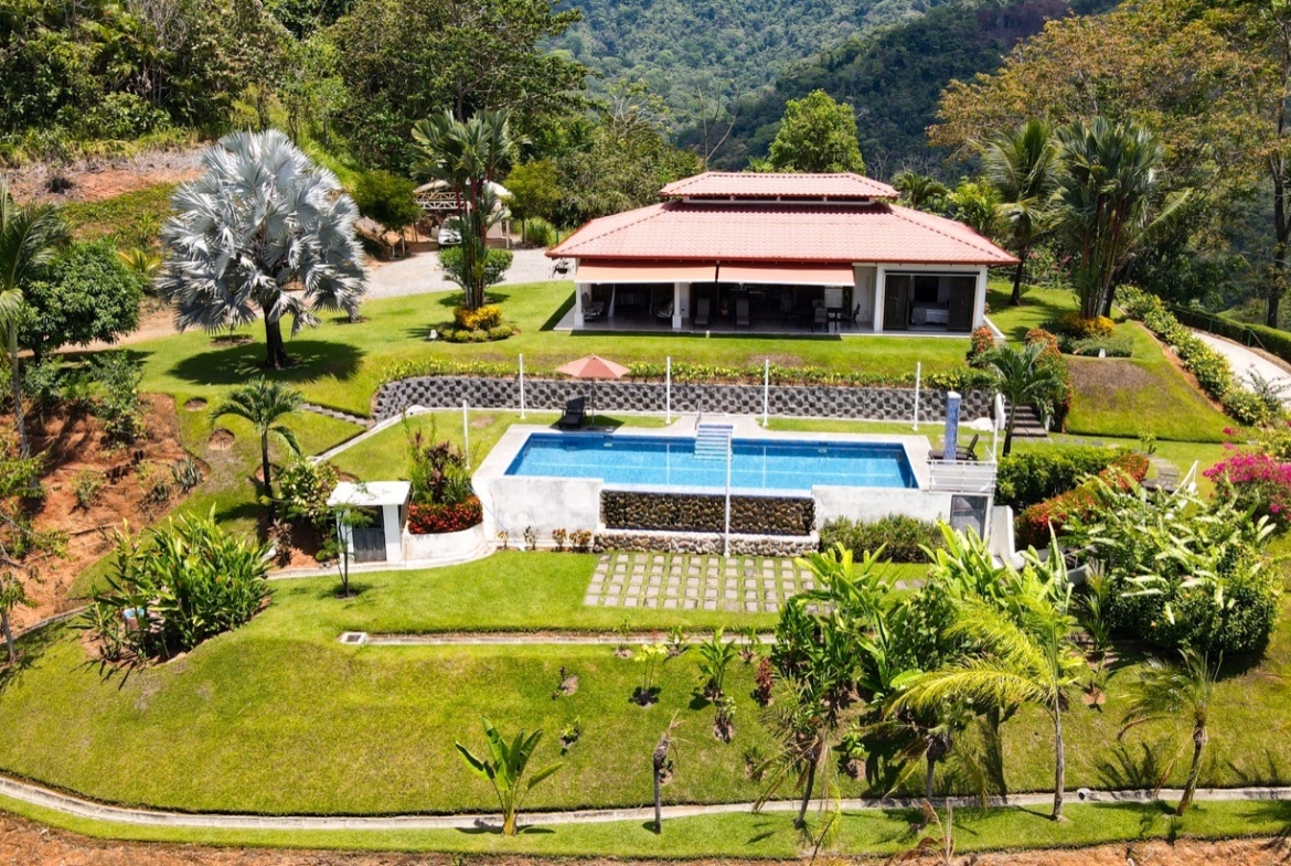 Set in the coastal foothills in the community of Chontales is this premiere three-bedroom ocean-view home and garden property. With views overlooking the Terraba River valley and the Pacific Coast to the top of the Osa Peninsula, this property at the end of the road is a tranquil refuge for those seeking to live a life among gorgeous tropical nature.