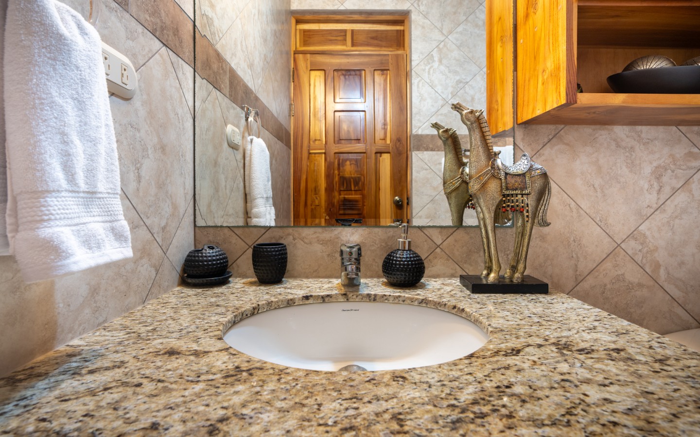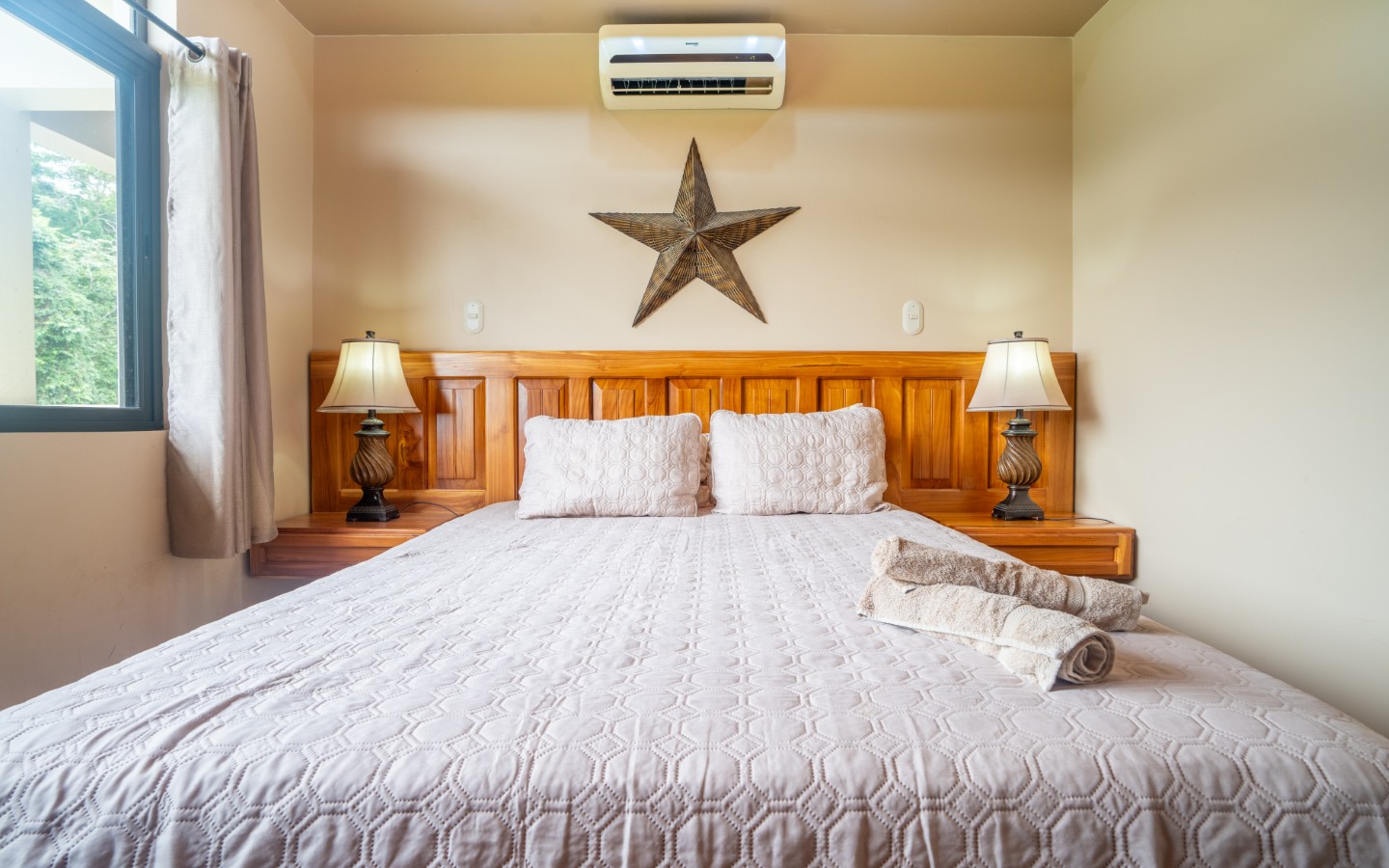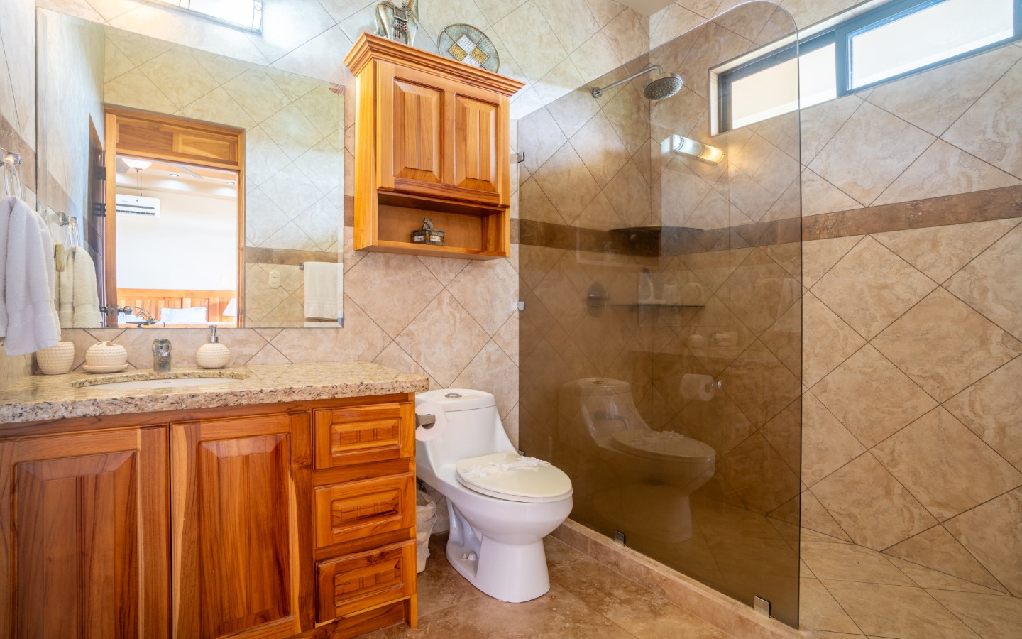 Located in the quiet gated community of San Buenas at a 700 ft elevation, just high enough to enjoy the breezes coming up from the South Pacific and coming down from the San Buenaventura mountains this rare offering is just waiting for you. This Penthouse unit is a gem just steps to the large pool and deck with washroom and changeroom. A covered private patio with breath taking Ocean and Sunset views to watch the clouds roll down the mountains of San Buenas. The jungle sounds of Toucans and other exotic birds are daily while the howler’s serenade and you enjoy the occasional visit from a troupe of spider monkeys. And…no 4×4 needed, just 5 minutes up the hill to complete bliss.