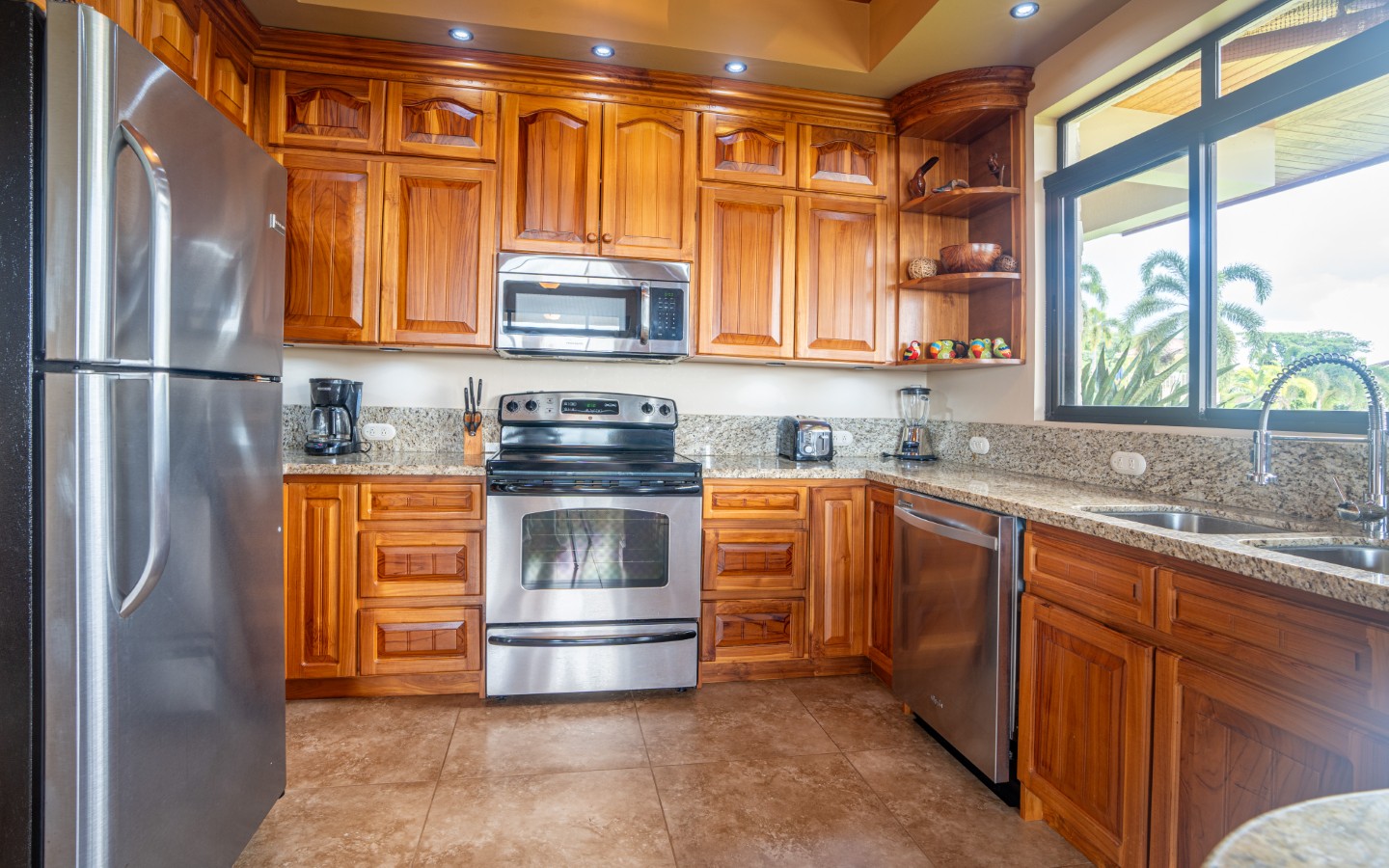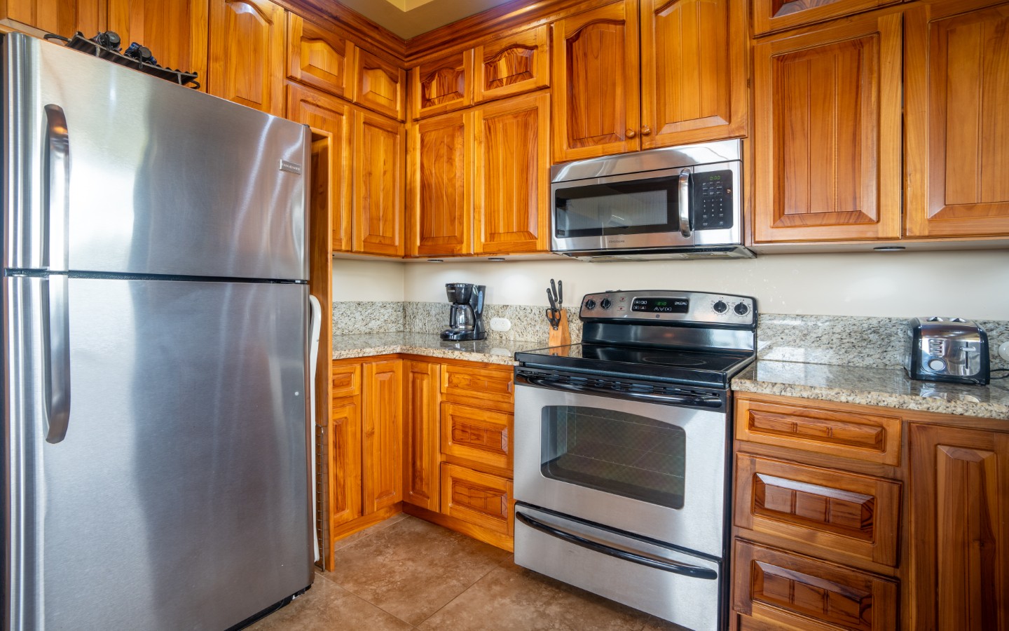 These sought after 2-bedroom suites are spacious with 121.146 m2 (1305 sq ft) of living space and comes completely turnkey, fully furnished, and equipped. The kitchen space is generous and finished with Granite counter tops, Teak cabinets, breakfast peninsula, large double stainless-steel sinks with new faucet. Recessed pot lights adorn the bulkheads with under cabinet lighting. Stainless-steel appliances and ready for entertaining. Extras include stacked laundry closet in the unit and additional common area storage closets for shared use of the owners.